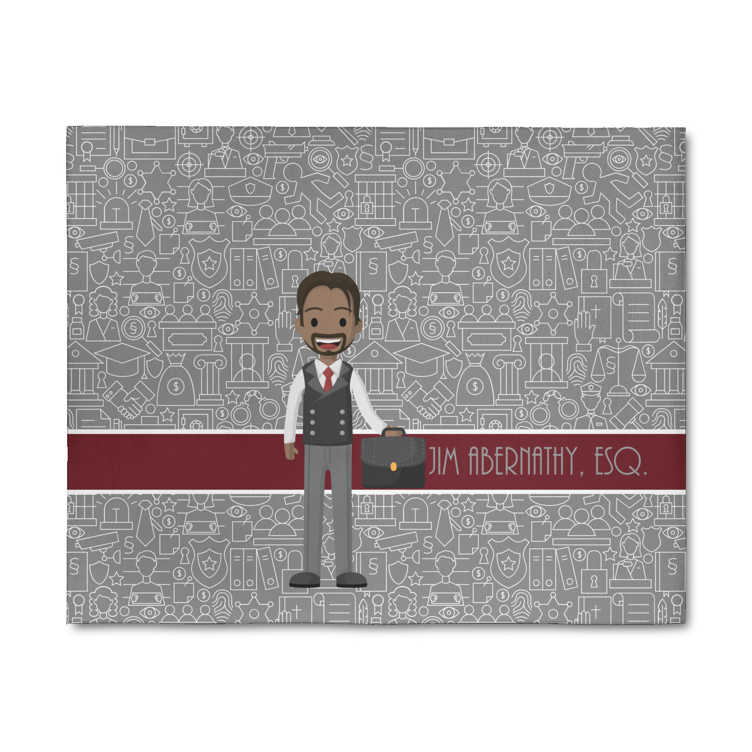 The background has fun attorney / law icons and is grey and white. The main feature of this design is a well dressed avatar of your choosing! You can upload your own or customize ours; you are able to customize the skin tone and hair color to fit what you like! There are also several different avatars / characters in the system to choose from with different hair and body types. Easily put your name or text right next to your avatar to finish off your awesome design.
