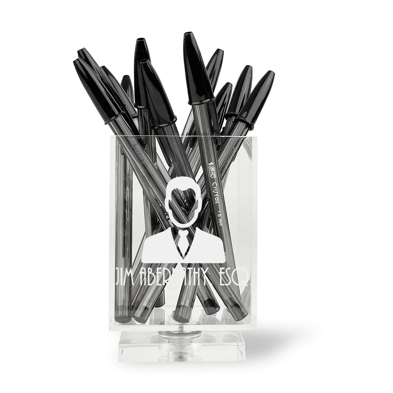Add a great accessory to your desk with one of these acrylic pen holders. A great way to store your writing utensils, and personalized to suit your needs.