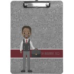 The background has fun attorney / law icons and is grey and white. The main feature of this design is a well dressed avatar of your choosing! You can upload your own or customize ours; you are able to customize the skin tone and hair color to fit what you like! There are also several different avatars / characters in the system to choose from with different hair and body types. Easily put your name or text right next to your avatar to finish off your awesome design.