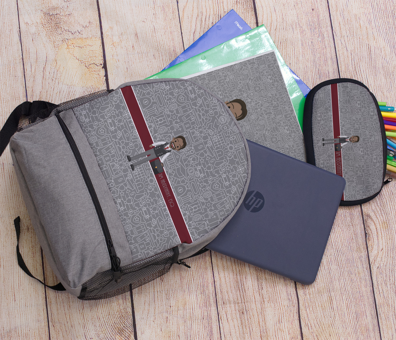 The background has fun attorney / law icons and is grey and white. The main feature of this design is a well dressed avatar of your choosing! You can upload your own or customize ours; you are able to customize the skin tone and hair color to fit what you like! There are also several different avatars / characters in the system to choose from with different hair and body types. Easily put your name or text right next to your avatar to finish off your awesome design.