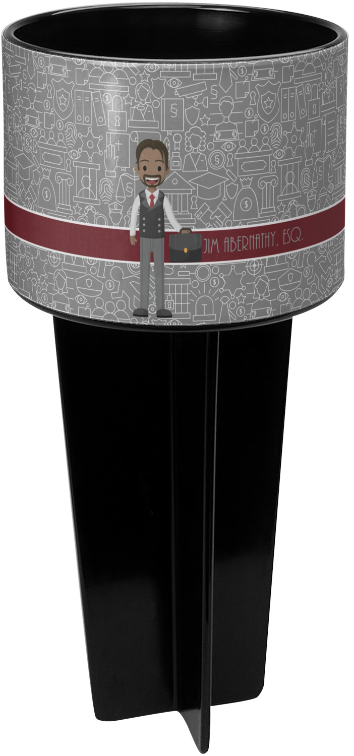 This cup holder has a large stake at its bottom that anchors it to the sand or ground below, while the cup holder rests above the stake. The entire drink holder is made of durable plastic and displays your customization around the cup holder portion. We sell these personalized beach spikers in two different colors: black and white.