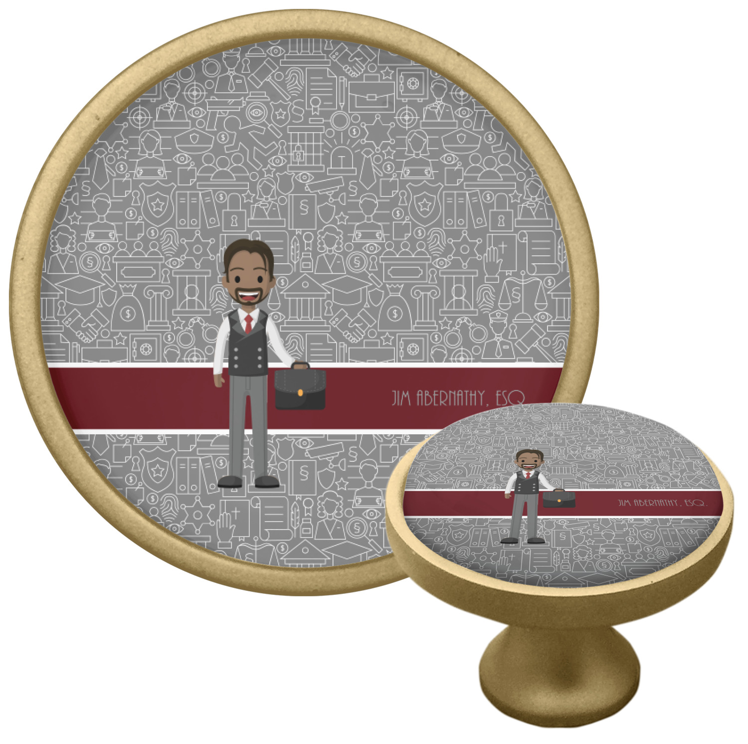 The background has fun attorney / law icons and is grey and white. The main feature of this design is a well dressed avatar of your choosing! You can upload your own or customize ours; you are able to customize the skin tone and hair color to fit what you like! There are also several different avatars / characters in the system to choose from with different hair and body types. Easily put your name or text right next to your avatar to finish off your awesome design.