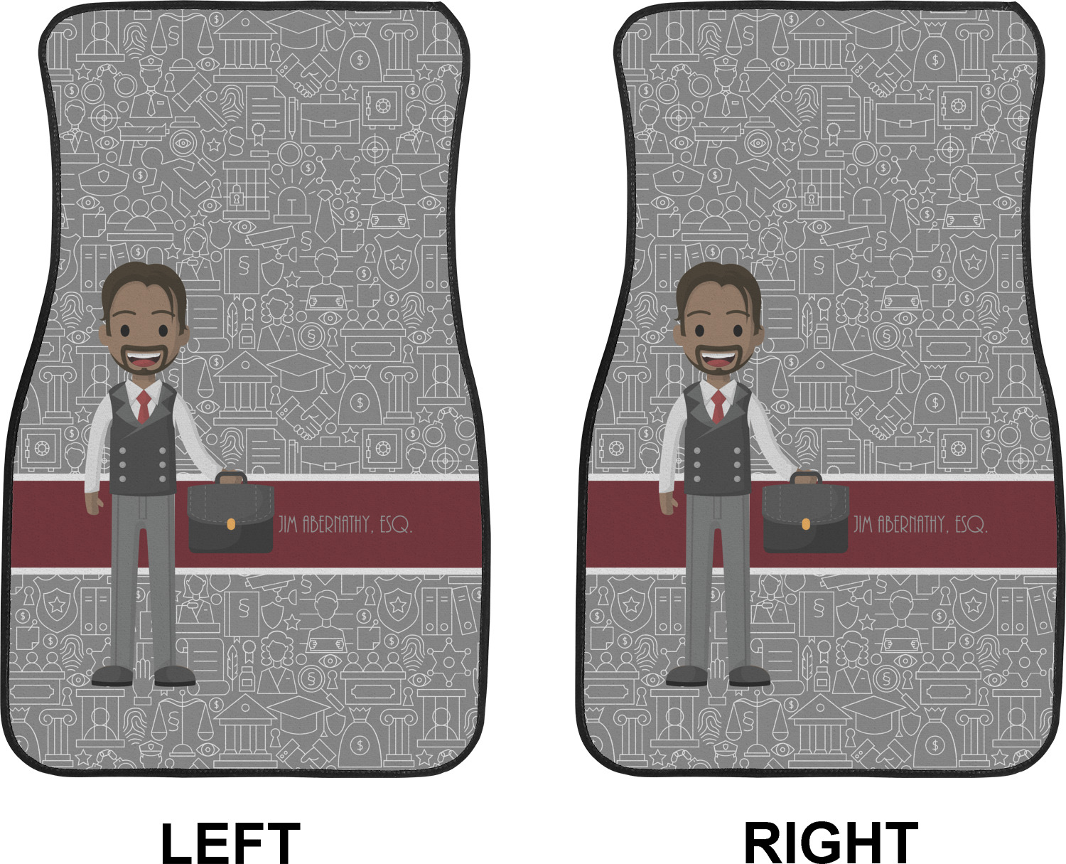 We craft our auto floor mats mats from polyester, apply a black finish to the edges, and lined at the bottom to prevent slippage. These mats protect your floors from grass, mud, and any accidental spills. We display your personalized design on the front face of each mat. The sizes of these car floor liners are standardized to provide a versatile fit for all vehicles. The front rows car mats measure at 17 by 26.5 inches, while the back rows measure at 17 by 13 inches. We sell three packages of car floor mats. You can purchase a pair of front row car mats, a pair of back row car mats, or a set of front row and back row car mats. To make an informed purchase, we recommend measuring the surface area of your car floors.