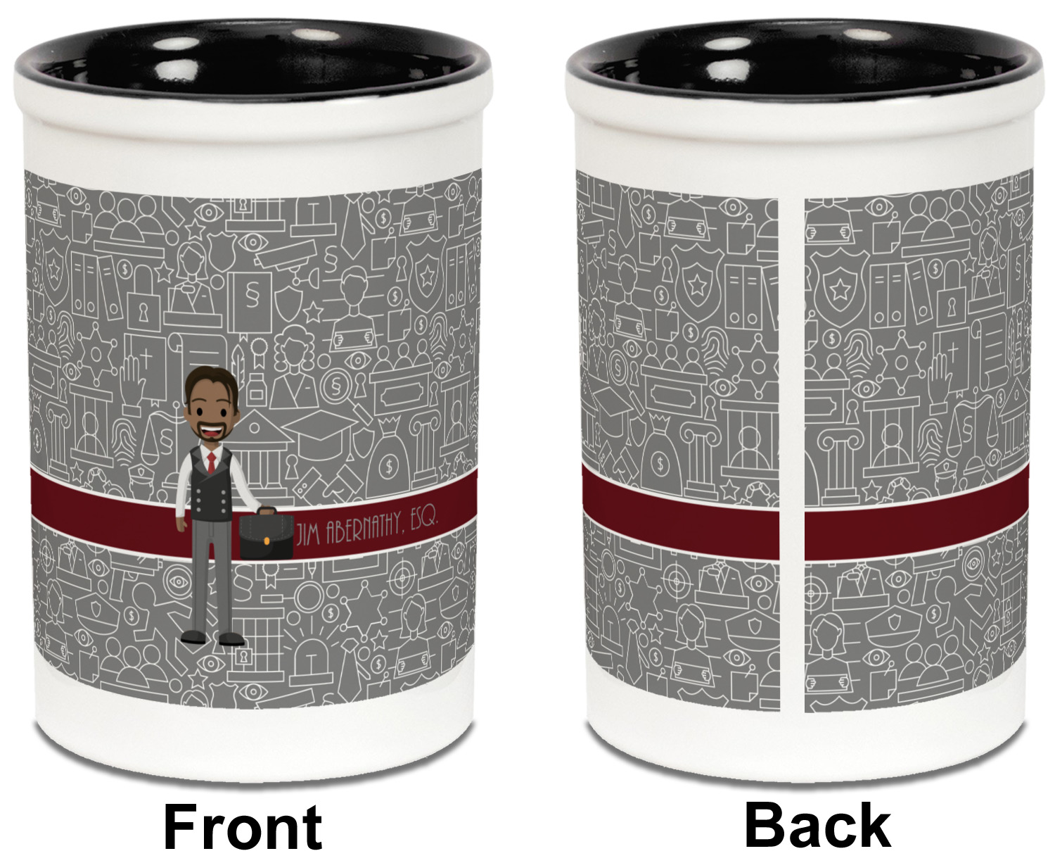 The background has fun attorney / law icons and is grey and white. The main feature of this design is a well dressed avatar of your choosing! You can upload your own or customize ours; you are able to customize the skin tone and hair color to fit what you like! There are also several different avatars / characters in the system to choose from with different hair and body types. Easily put your name or text right next to your avatar to finish off your awesome design.