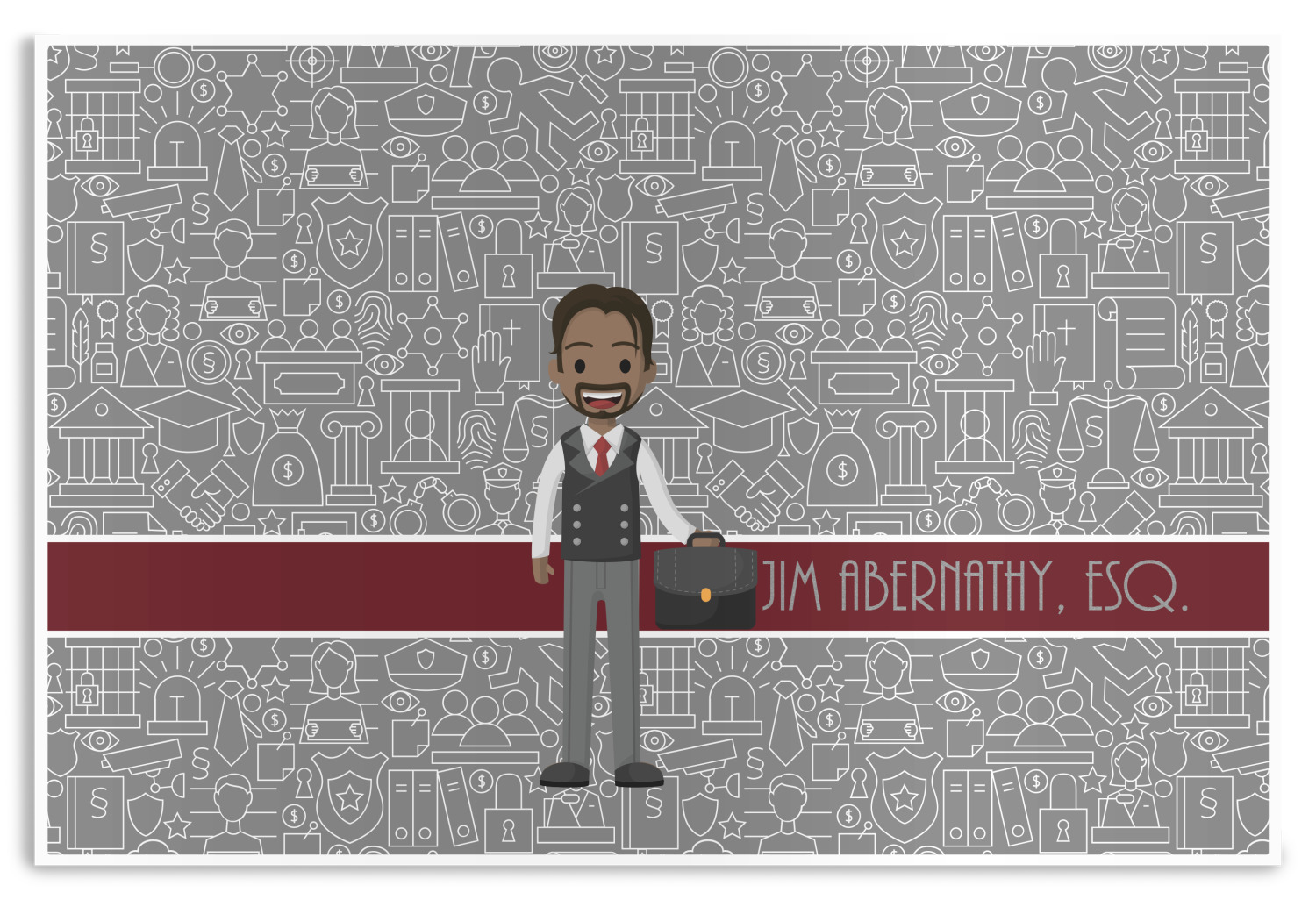 The background has fun attorney / law icons and is grey and white. The main feature of this design is a well dressed avatar of your choosing! You can upload your own or customize ours; you are able to customize the skin tone and hair color to fit what you like! There are also several different avatars / characters in the system to choose from with different hair and body types. Easily put your name or text right next to your avatar to finish off your awesome design.