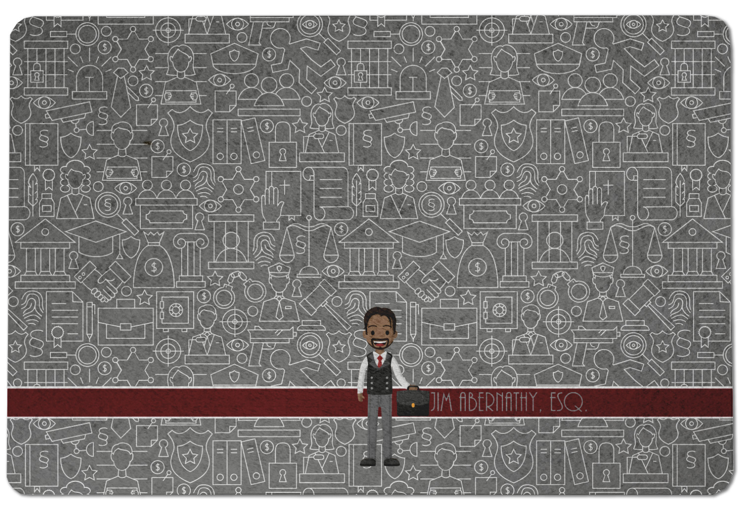 The background has fun attorney / law icons and is grey and white. The main feature of this design is a well dressed avatar of your choosing! You can upload your own or customize ours; you are able to customize the skin tone and hair color to fit what you like! There are also several different avatars / characters in the system to choose from with different hair and body types. Easily put your name or text right next to your avatar to finish off your awesome design.