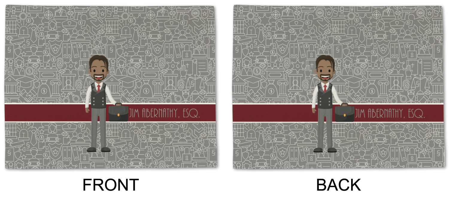The background has fun attorney / law icons and is grey and white. The main feature of this design is a well dressed avatar of your choosing! You can upload your own or customize ours; you are able to customize the skin tone and hair color to fit what you like! There are also several different avatars / characters in the system to choose from with different hair and body types. Easily put your name or text right next to your avatar to finish off your awesome design.