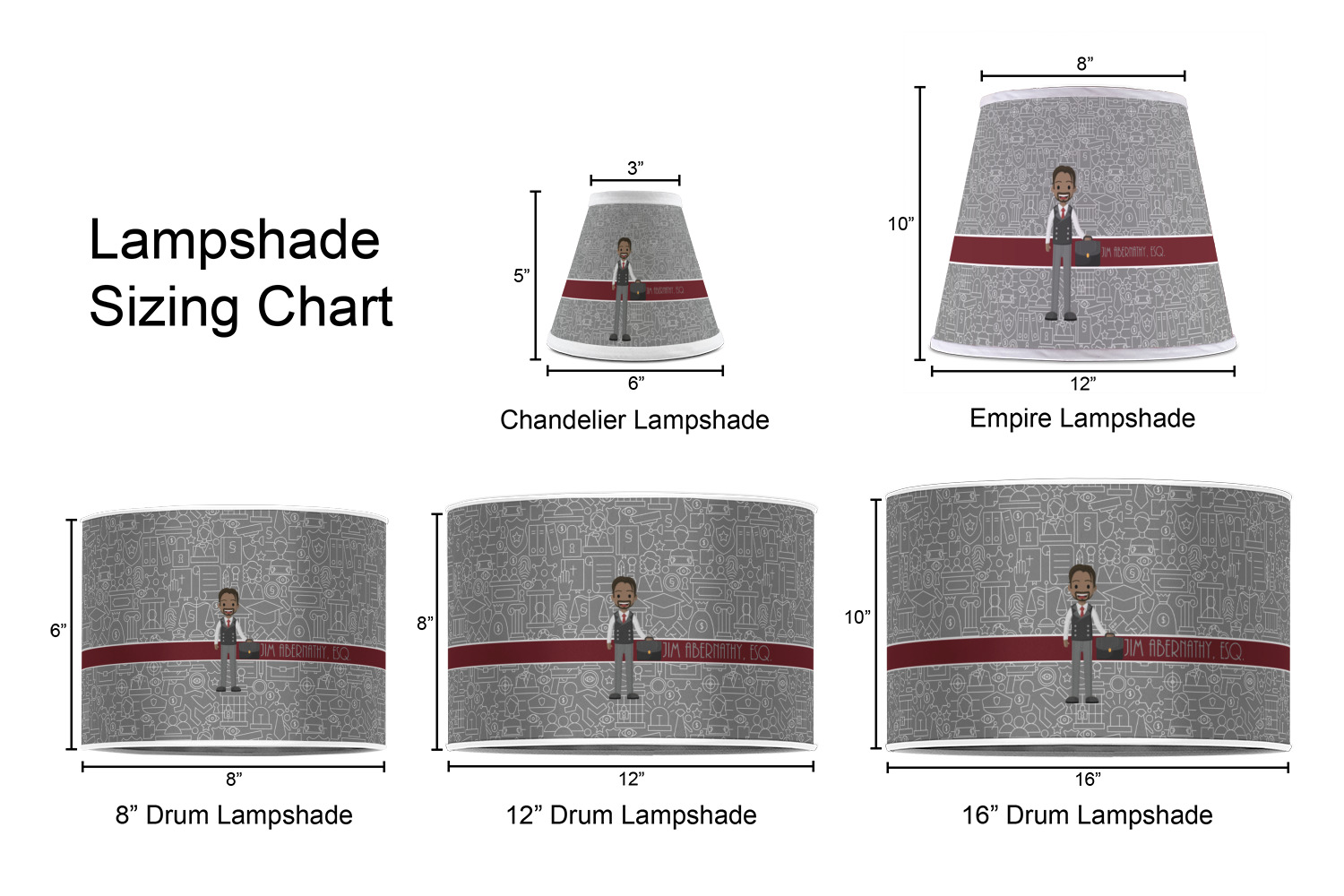 Our customized lamp shades also come in 3 different sizes: 8", 12" and 16", measuring at 8" in diameter by 6" tall, 12" in diameter by 8" tall, and 16" in diameter by 10" tall, respectively.
