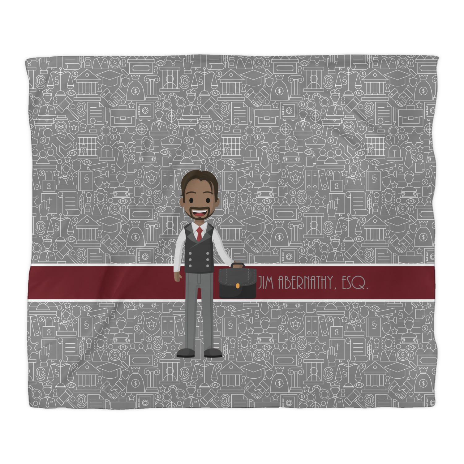 The background has fun attorney / law icons and is grey and white. The main feature of this design is a well dressed avatar of your choosing! You can upload your own or customize ours; you are able to customize the skin tone and hair color to fit what you like! There are also several different avatars / characters in the system to choose from with different hair and body types. Easily put your name or text right next to your avatar to finish off your awesome design.