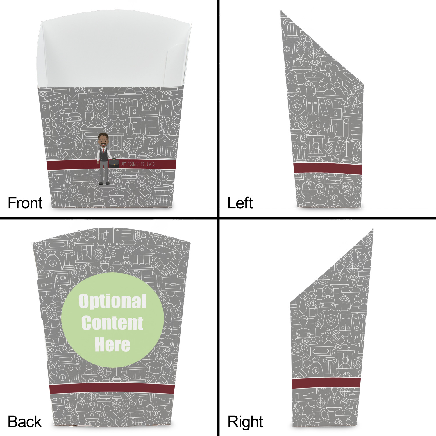 These favor boxes are printed in full color on quality cardstock - so coordinating the french fry favor boxes to match your event's themes or colors should be a breeze. You can upload your own design including artwork, logos or photos