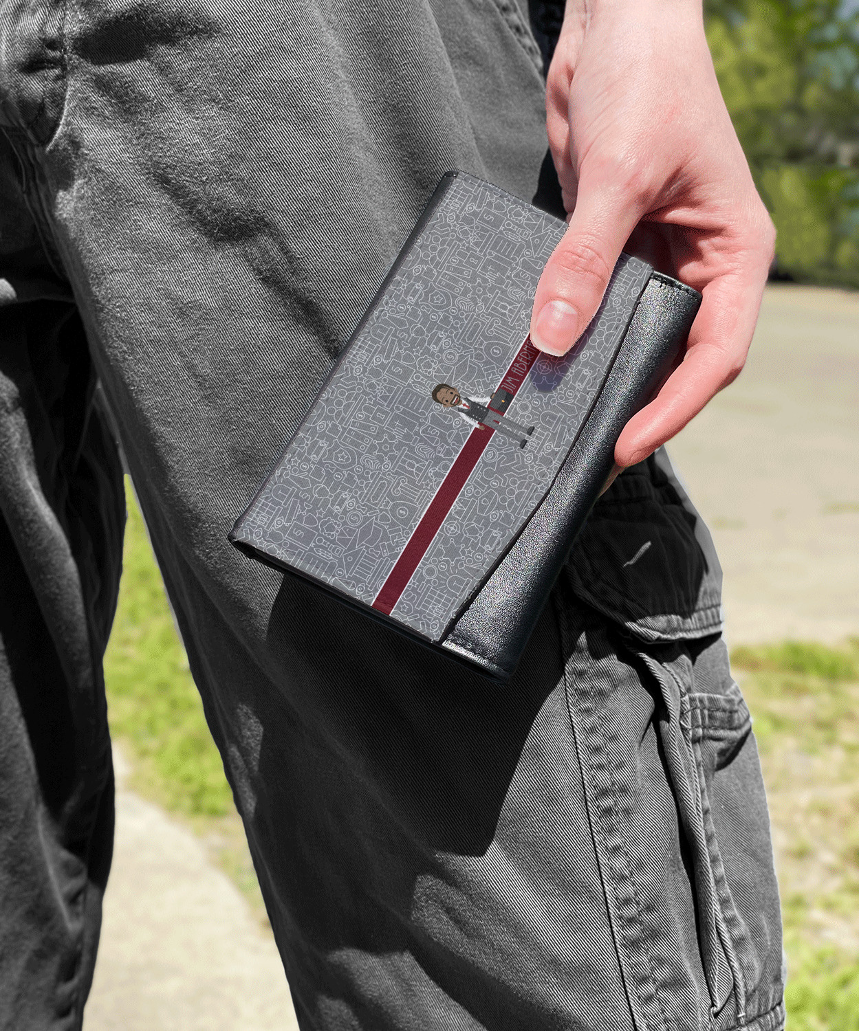 The compact size of this wallet - 5.5in wide, 3.5in tall and 0.75in thick when folded - makes it perfect to hold in hand and small enough to fit in a clutch or a normal size purse. The outside flap is customized with your choice of artwork and closes with a snap closure - with two different snaps to allow it to be adjusted when storing more items - to securely fasten the flap.