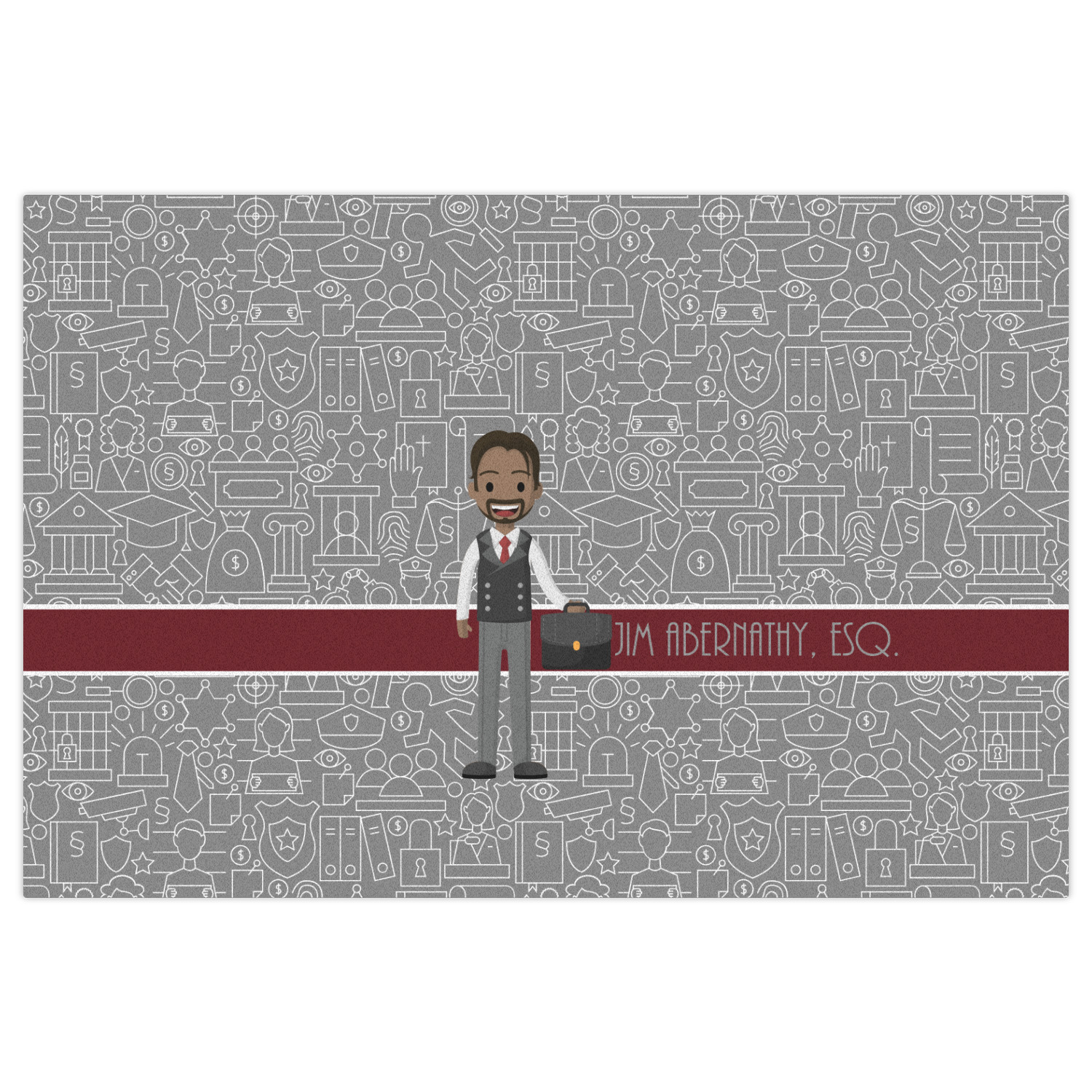 The background has fun attorney / law icons and is grey and white. The main feature of this design is a well dressed avatar of your choosing! You can upload your own or customize ours; you are able to customize the skin tone and hair color to fit what you like! There are also several different avatars / characters in the system to choose from with different hair and body types. Easily put your name or text right next to your avatar to finish off your awesome design.