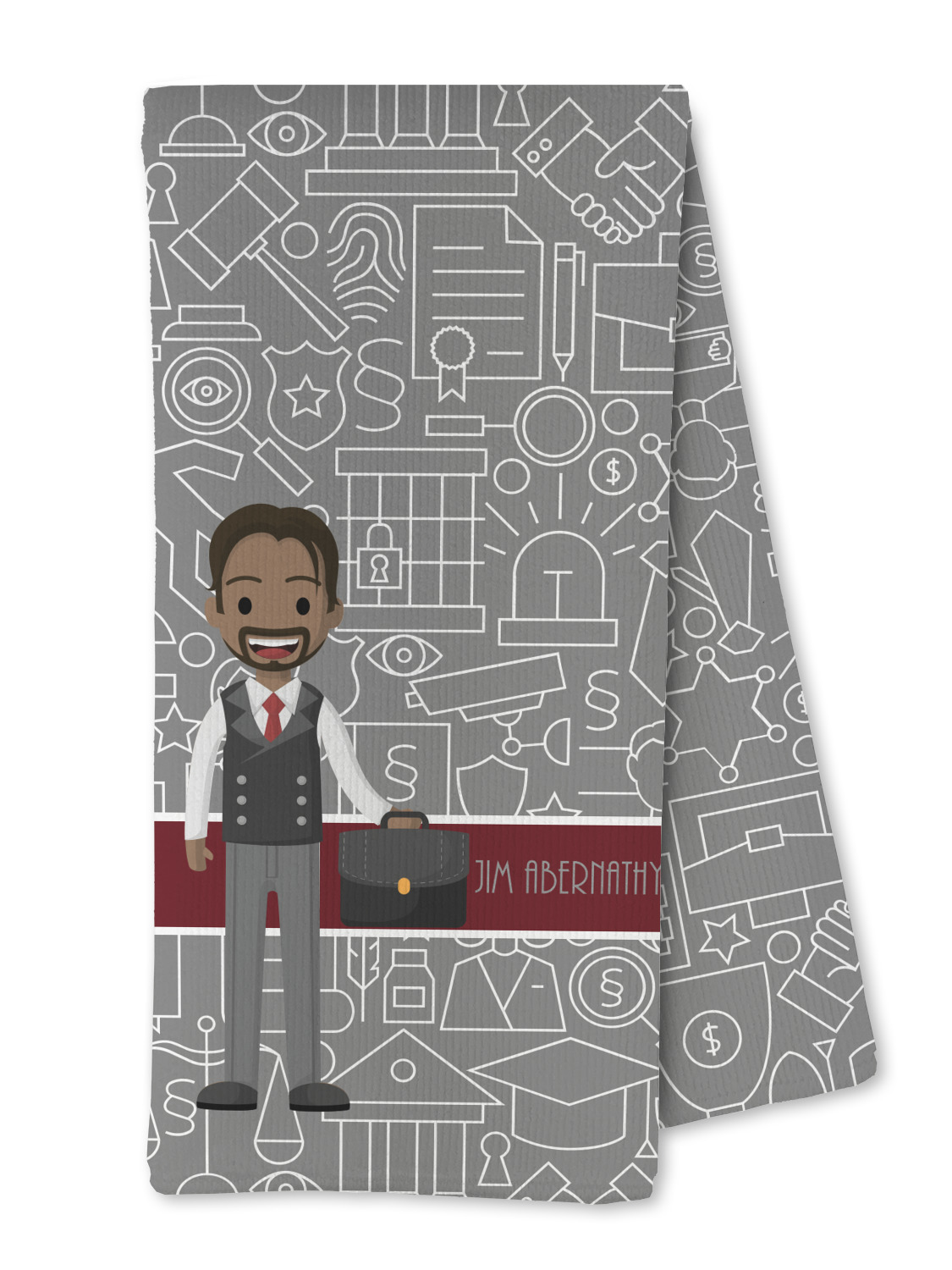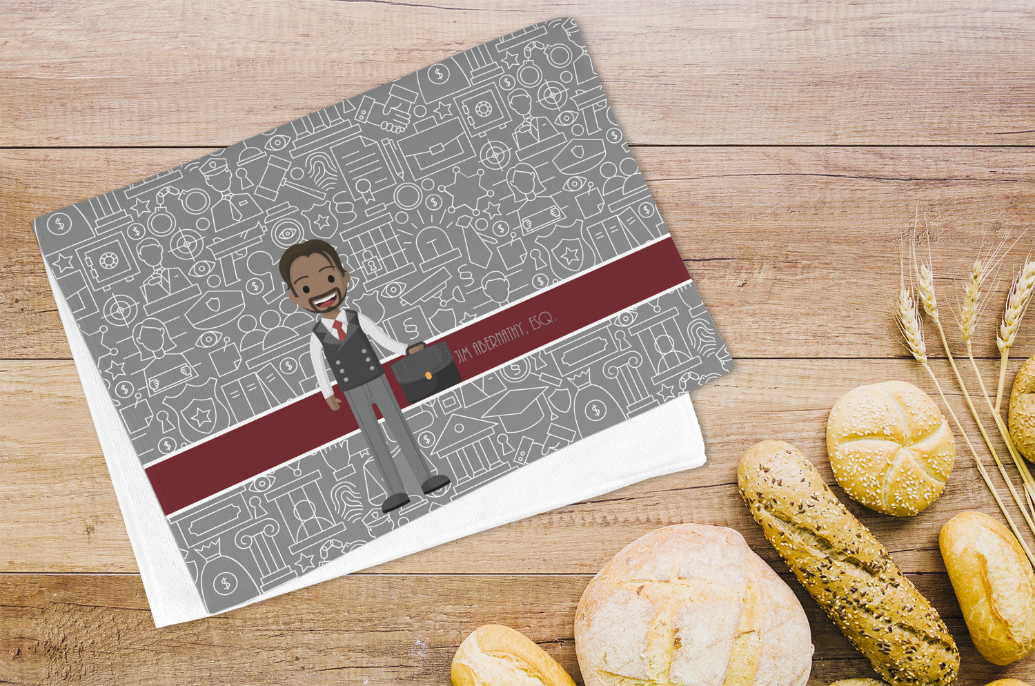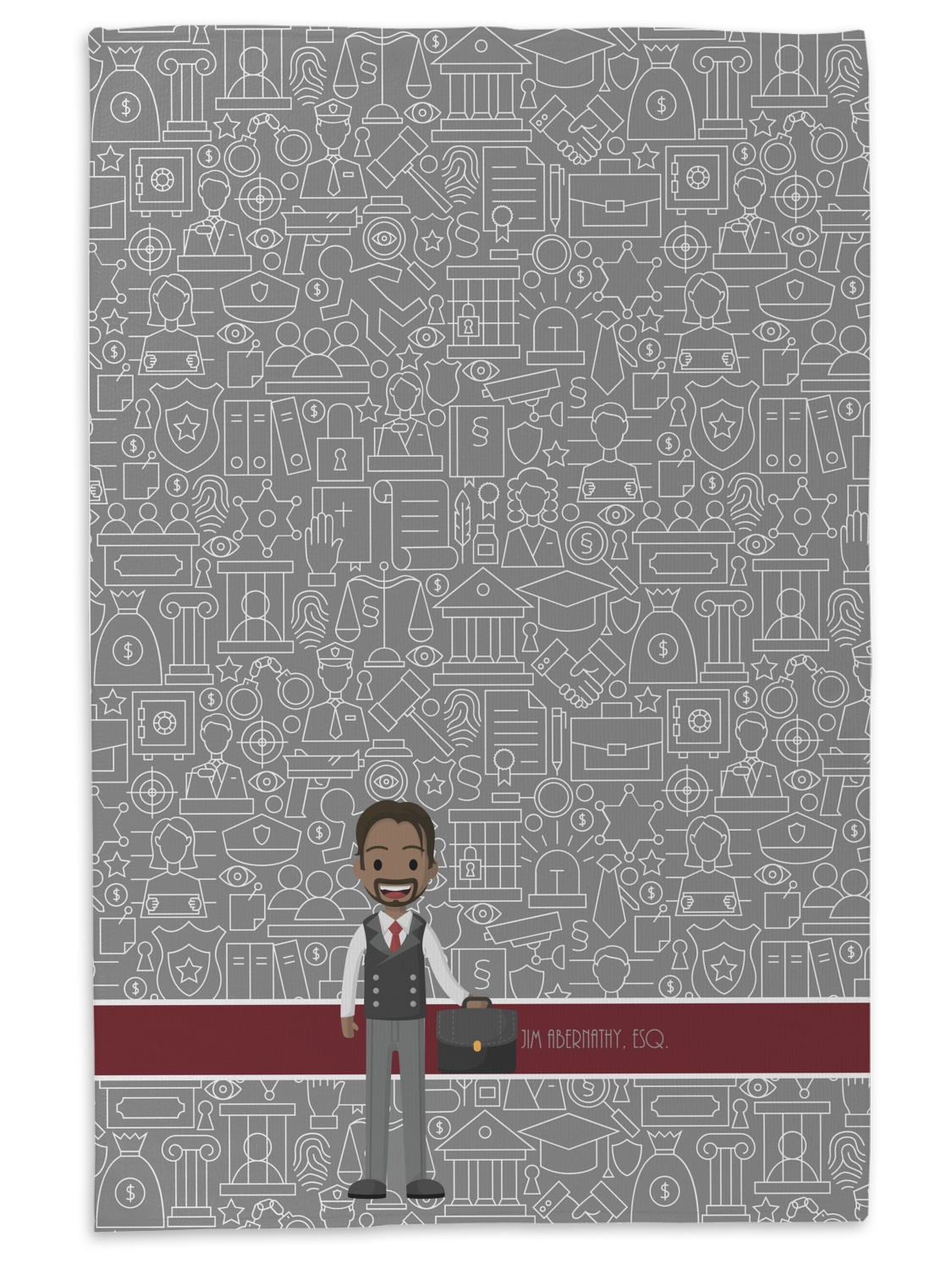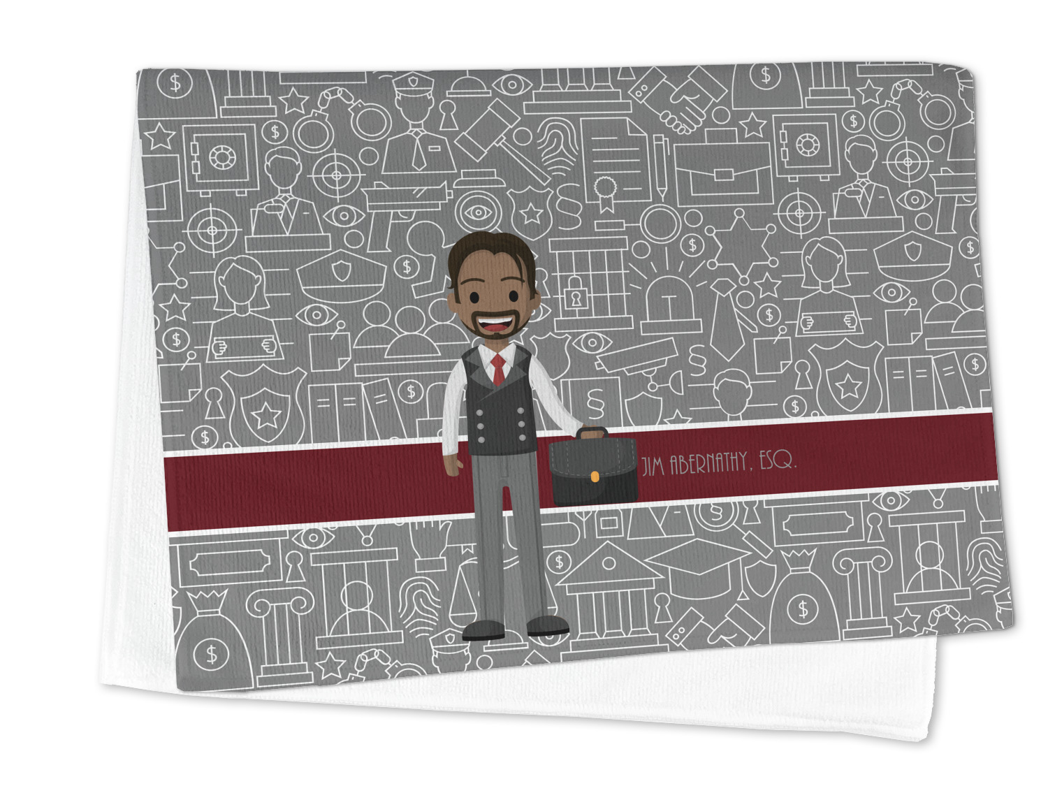The background has fun attorney / law icons and is grey and white. The main feature of this design is a well dressed avatar of your choosing! You can upload your own or customize ours; you are able to customize the skin tone and hair color to fit what you like! There are also several different avatars / characters in the system to choose from with different hair and body types. Easily put your name or text right next to your avatar to finish off your awesome design.