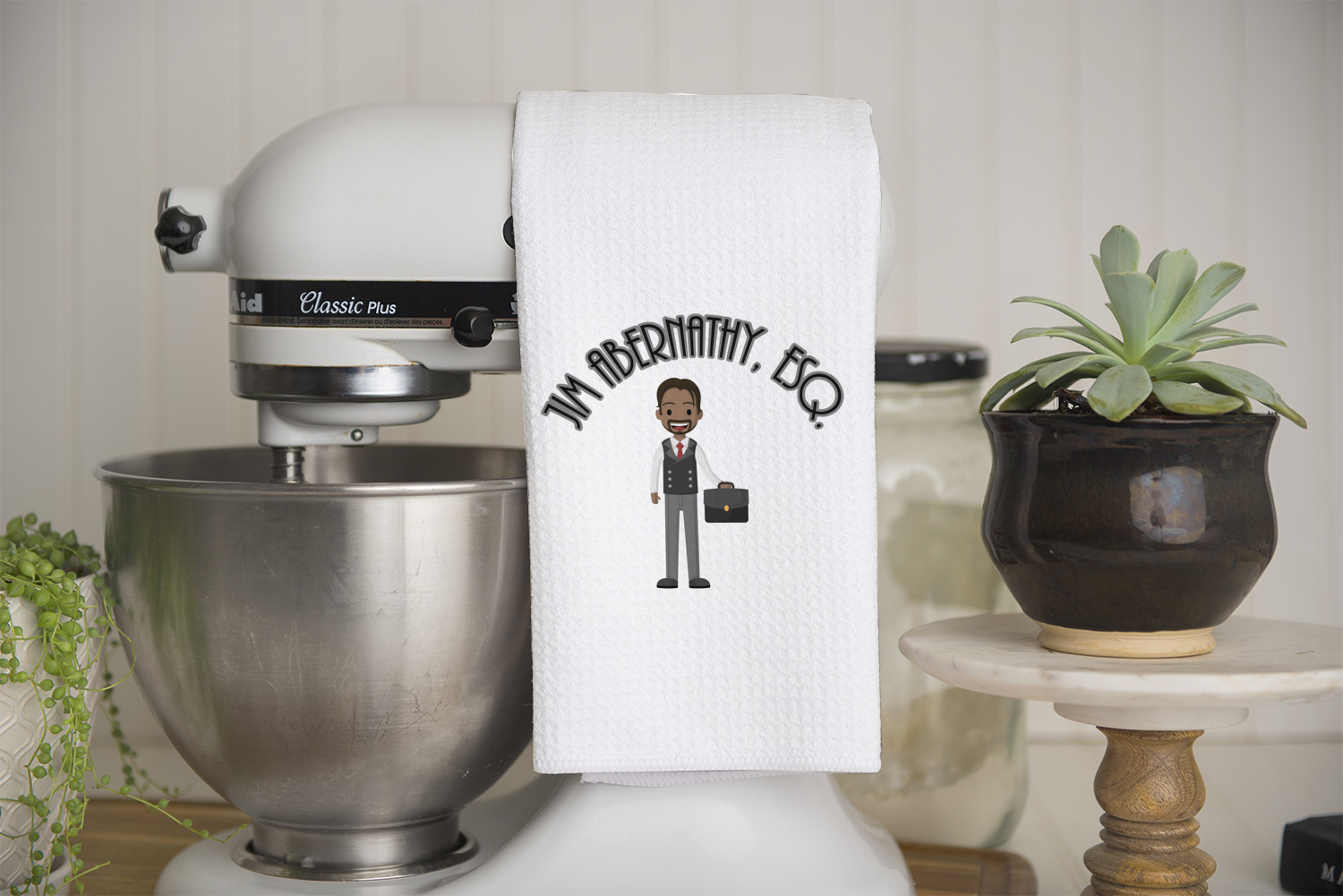 Each waffle weave kitchen towel is approximately 16 x 24 inches with your design printed on one side and the back is white.