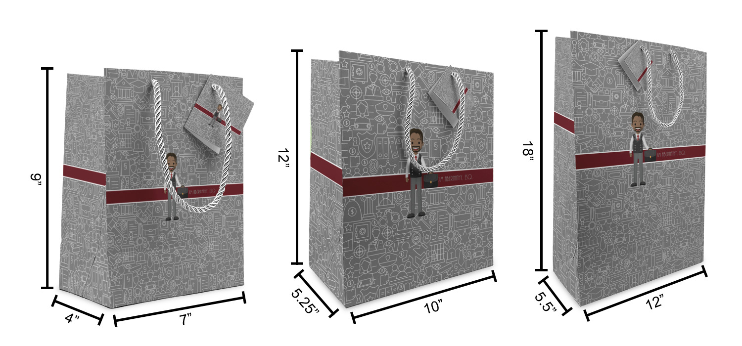 These custom gift bags come in your choice of 3 sizes. Their dimensions are below: