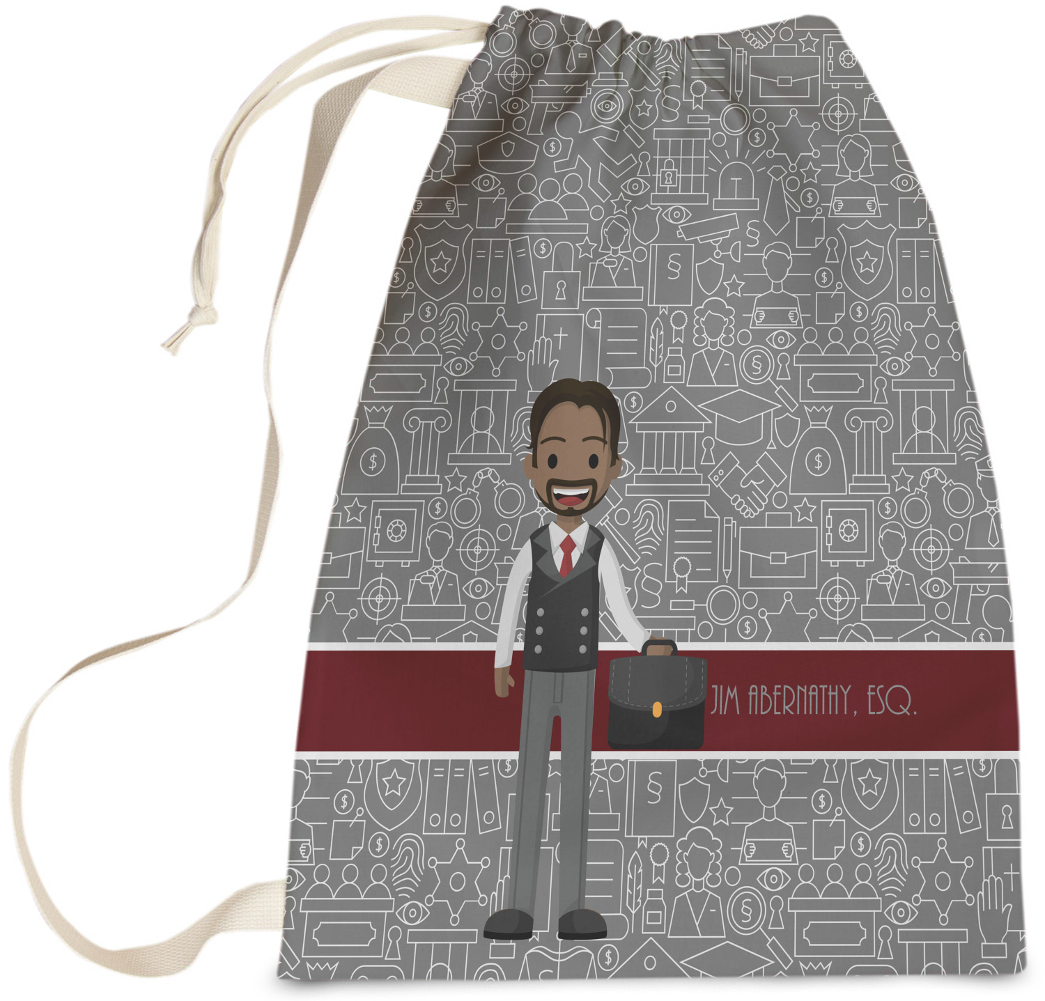 Carry your laundry in style with these customized laundry bags. Available in two sizes, featuring a natural colored woven strap and a cinch cord, these bags hold a lot of clothes or anything else you want to fit in them.