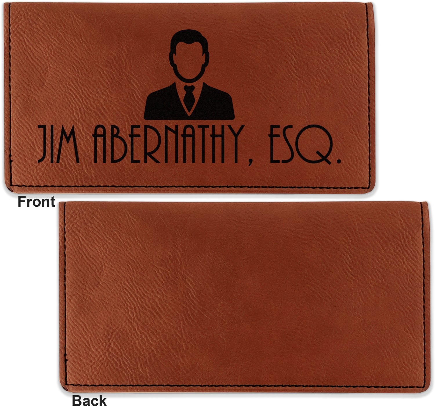 Go into our design center to start personalizing. Your checkbook cover will be laser engraved, making the graphic or text a black color. Choose a fun saying, monogram, or font to go on your checkbook cover. You have the opportunity to do it double or single sided.