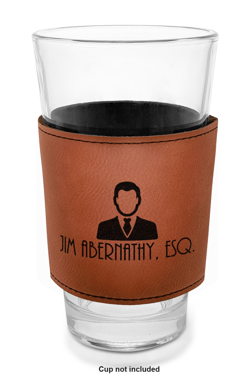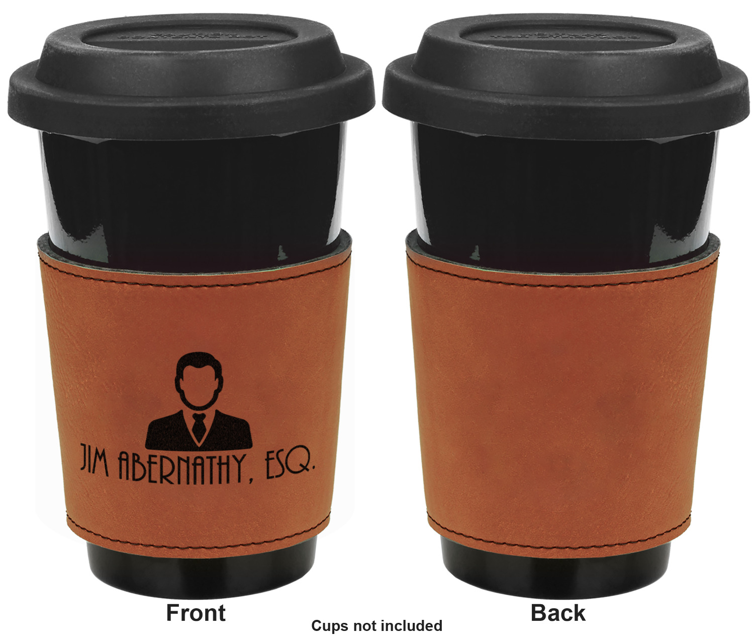 This cup sleeve is made from a suave, cognac-brown leatherette and finished with an intricate, black stitch. The interior of this can sleeve is fabricated from a thin foam material to help insulate your mug's contents. The sleeve is specifically made to suit tapered glasses or mugs, so the top's diameter is 3.5 inches, while the bottom's diameter is 2.75 inches. Your customized design will be laser engraved into the leatherette, leaving behind crisp, black imprint. With these products, we provide you with the option of engraving the front and back, or the front only.