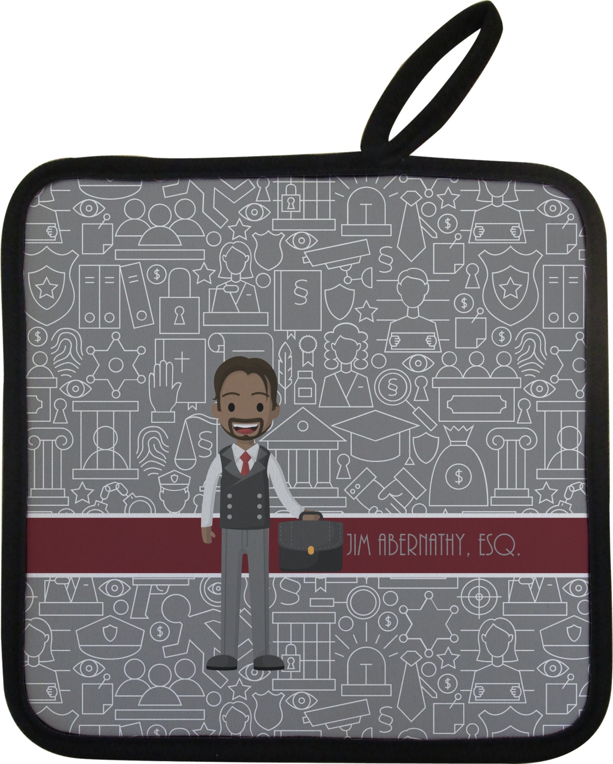 Along with our heat resistant gloves, we also carry personalized pot holders. These pot holders also feature a neoprene front that displays your personalization, and a textured, rubber backing for a sturdy grip. The two materials are connected with a sleek, black trim, and the hot pot holder also includes an attached loop for hanging and storage. You can purchase a kitchen pot holder by itself, or alongside a right or left oven mitt, depending on your needs. The pot holder itself is approximately 8.75 inches by 8.75 inches and 0.25 inches tall.