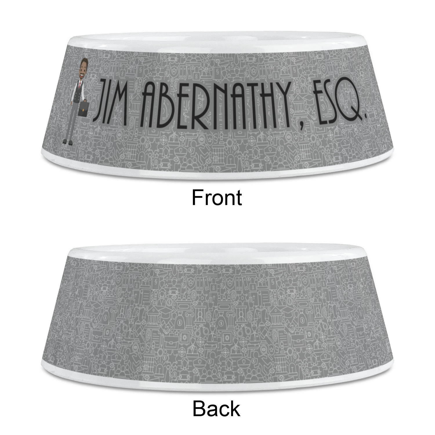 The background has fun attorney / law icons and is grey and white. The main feature of this design is a well dressed avatar of your choosing! You can upload your own or customize ours; you are able to customize the skin tone and hair color to fit what you like! There are also several different avatars / characters in the system to choose from with different hair and body types. Easily put your name or text right next to your avatar to finish off your awesome design.