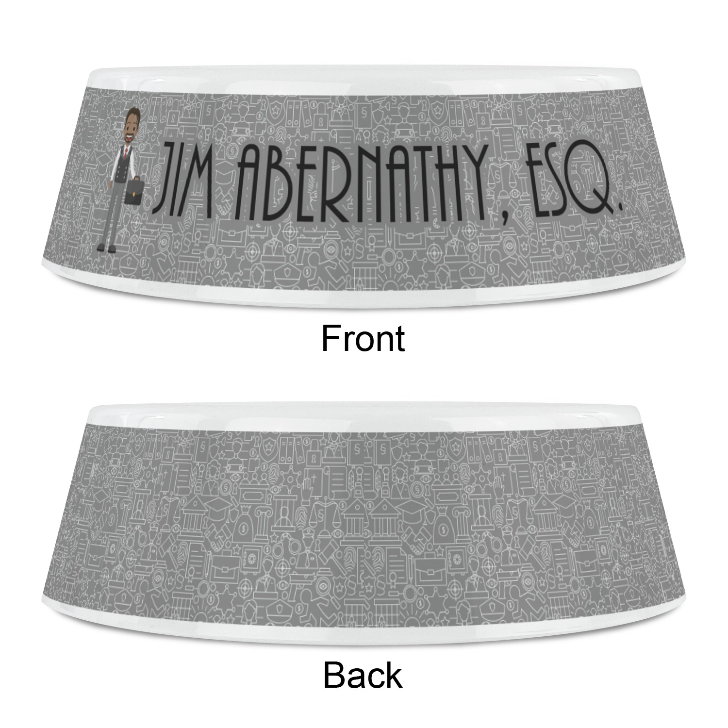 The background has fun attorney / law icons and is grey and white. The main feature of this design is a well dressed avatar of your choosing! You can upload your own or customize ours; you are able to customize the skin tone and hair color to fit what you like! There are also several different avatars / characters in the system to choose from with different hair and body types. Easily put your name or text right next to your avatar to finish off your awesome design.