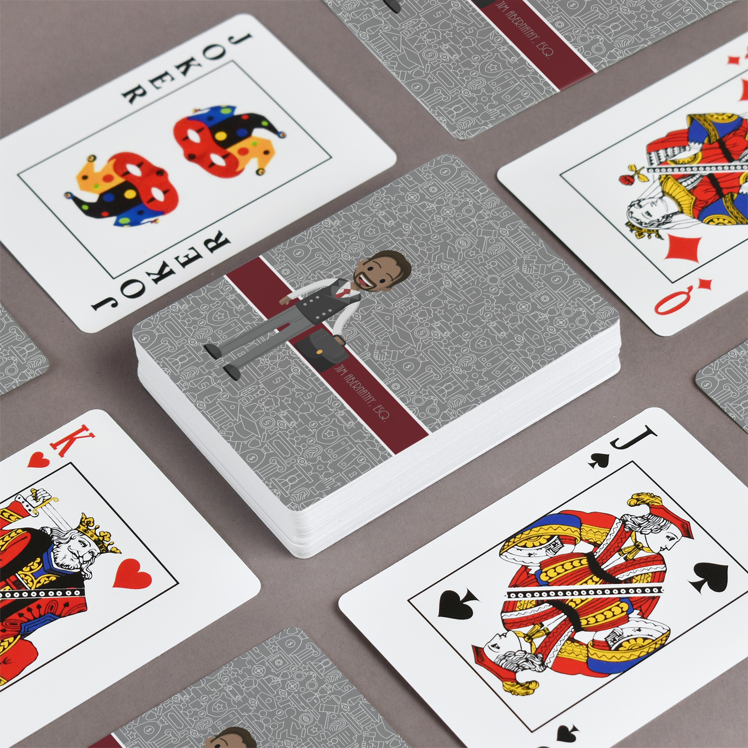 Our playing cards are perfect for family game nights or poker nights. A deck of customized playing cards ups the level of fun & entertainment to your game or poker nights. Imagine playing cards customized to match the theme of your game room, or game night, or that special event, or occasion with gambling tables!