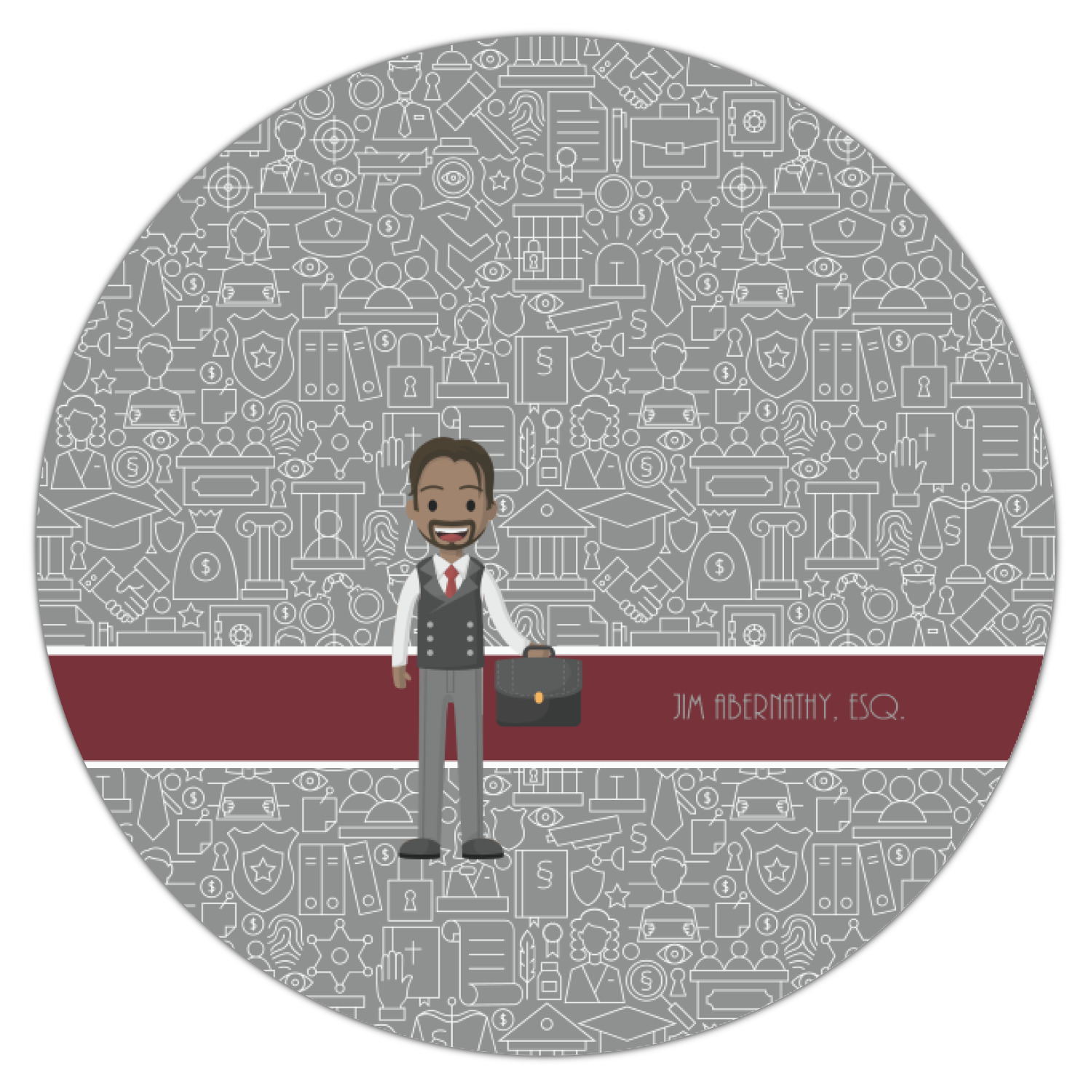 The background has fun attorney / law icons and is grey and white. The main feature of this design is a well dressed avatar of your choosing! You can upload your own or customize ours; you are able to customize the skin tone and hair color to fit what you like! There are also several different avatars / characters in the system to choose from with different hair and body types. Easily put your name or text right next to your avatar to finish off your awesome design.