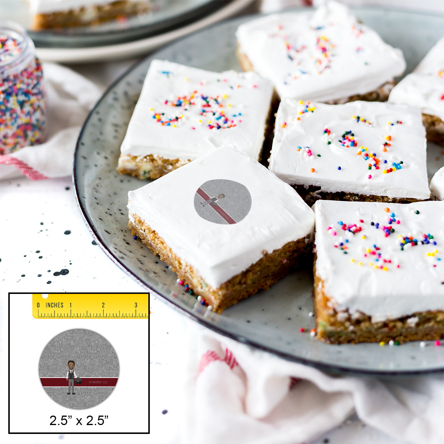 Your customized cookie toppers can be placed on top of any dessert with an icing top.The icing helps adhere the cookie topper to the dessert.