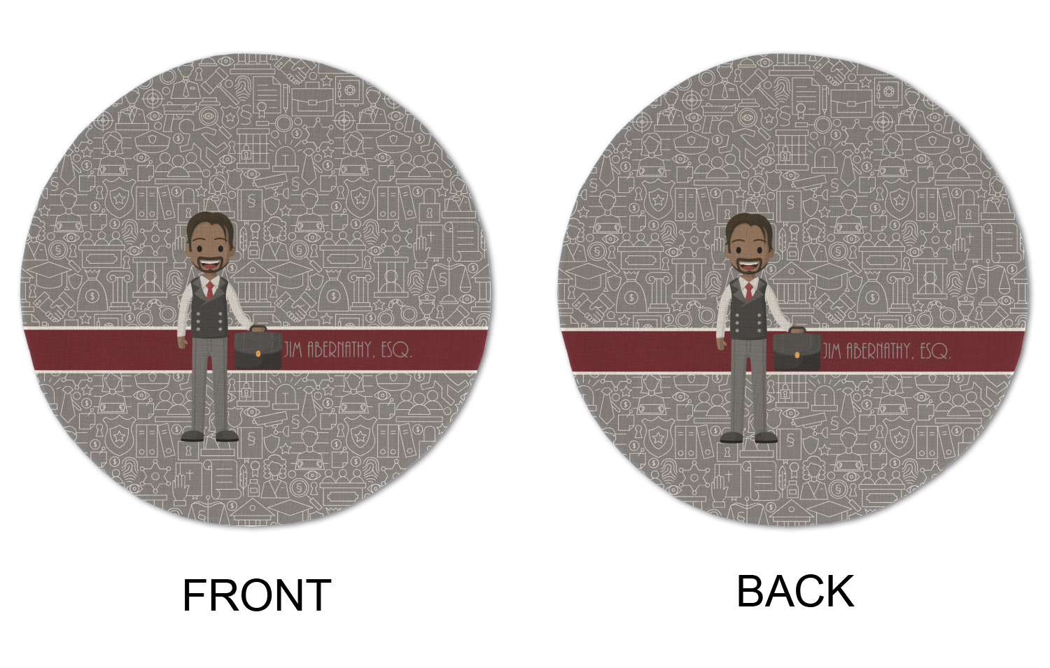 The background has fun attorney / law icons and is grey and white. The main feature of this design is a well dressed avatar of your choosing! You can upload your own or customize ours; you are able to customize the skin tone and hair color to fit what you like! There are also several different avatars / characters in the system to choose from with different hair and body types. Easily put your name or text right next to your avatar to finish off your awesome design.