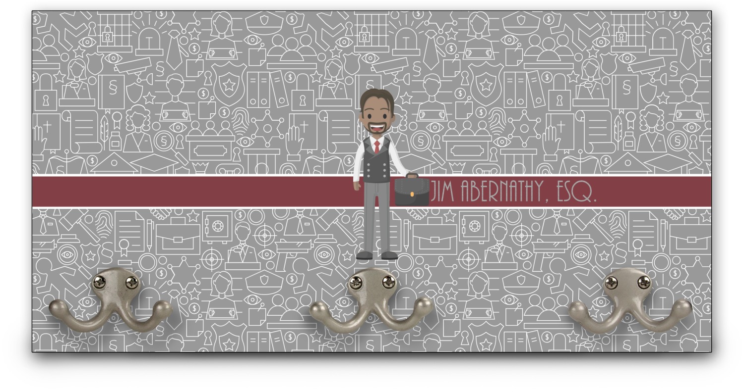 This coat rack is the perfect way to add some personality to your wall or entryway. The board is made of a strong maple that is approximately 16" x 8". The three 2-prong hooks are a sturdy metal that have three screws attaching them to the board. Your design is printed right onto the front of the board while the back and sides are a simple black.