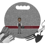 The background has fun attorney / law icons and is grey and white. The main feature of this design is a well dressed avatar of your choosing! You can upload your own or customize ours; you are able to customize the skin tone and hair color to fit what you like! There are also several different avatars / characters in the system to choose from with different hair and body types. Easily put your name or text right next to your avatar to finish off your awesome design.