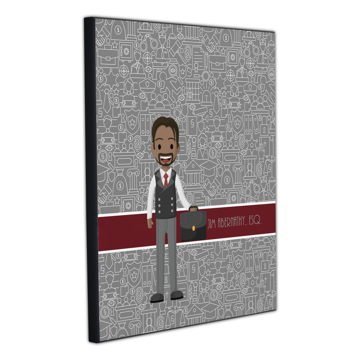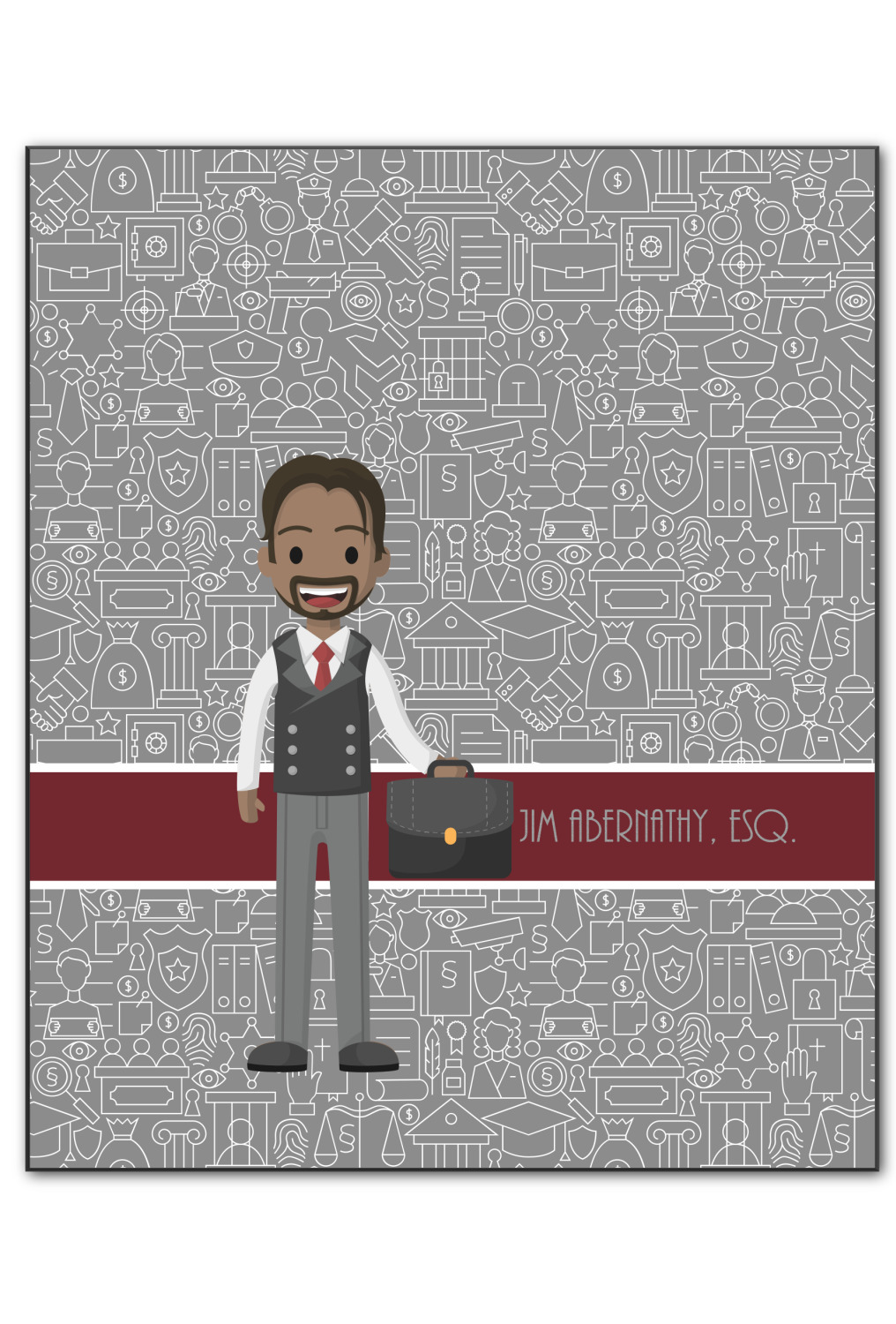 The background has fun attorney / law icons and is grey and white. The main feature of this design is a well dressed avatar of your choosing! You can upload your own or customize ours; you are able to customize the skin tone and hair color to fit what you like! There are also several different avatars / characters in the system to choose from with different hair and body types. Easily put your name or text right next to your avatar to finish off your awesome design.