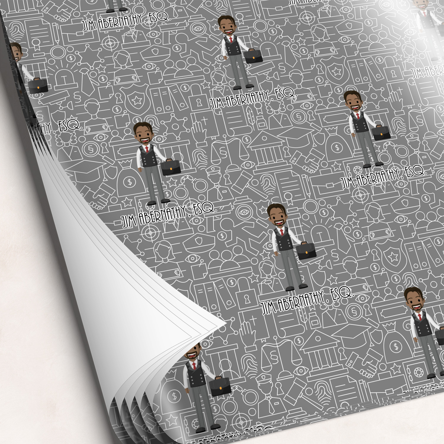 The background has fun attorney / law icons and is grey and white. The main feature of this design is a well dressed avatar of your choosing! You can upload your own or customize ours; you are able to customize the skin tone and hair color to fit what you like! There are also several different avatars / characters in the system to choose from with different hair and body types. Easily put your name or text right next to your avatar to finish off your awesome design.