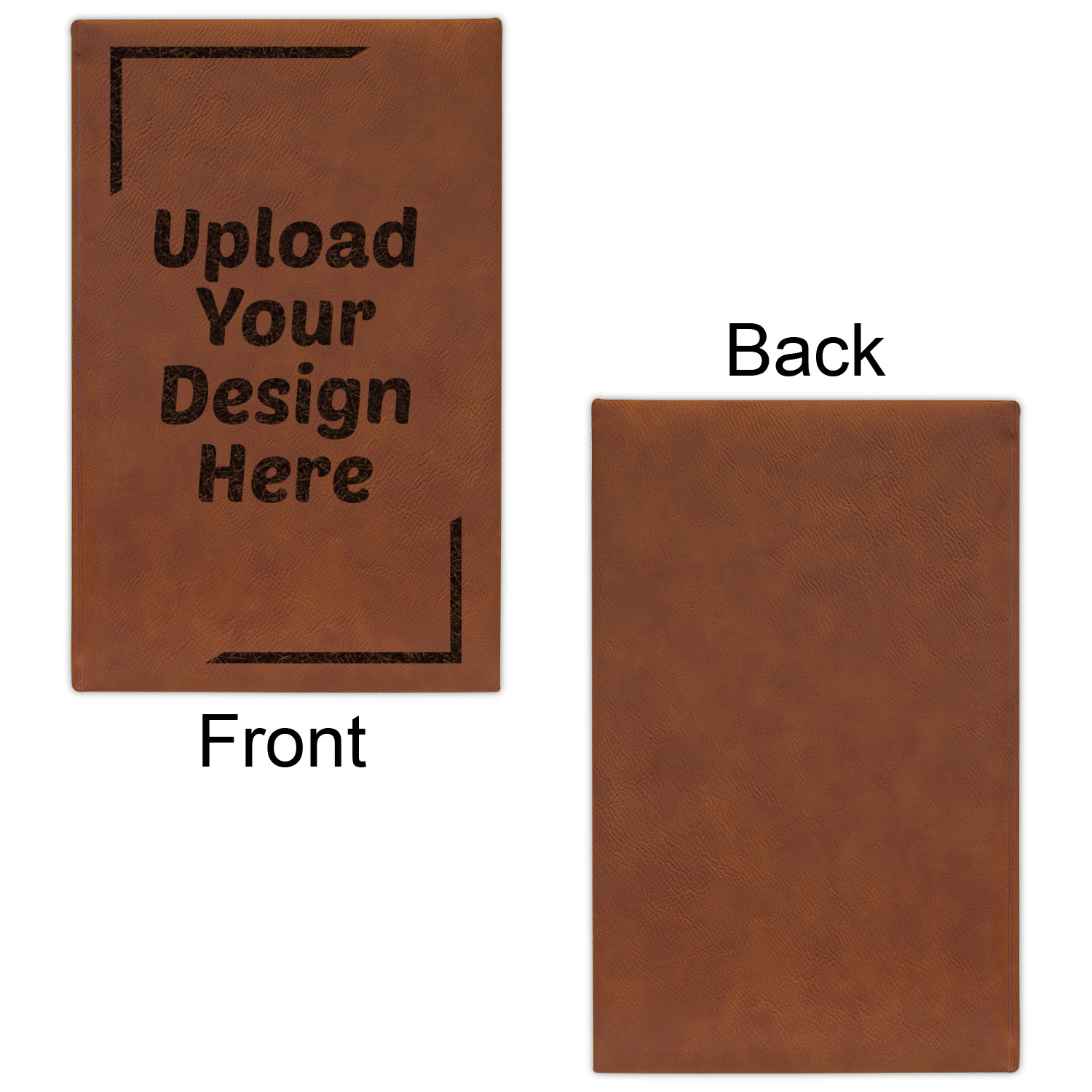 The faux leather covers are a rich cognac / rawhide color and can be customized with your design. From a simple name or monogram or a logo to a detailed mandala - the choice for customization & personalization is truly yours. Customize one of our designs or upload your own.