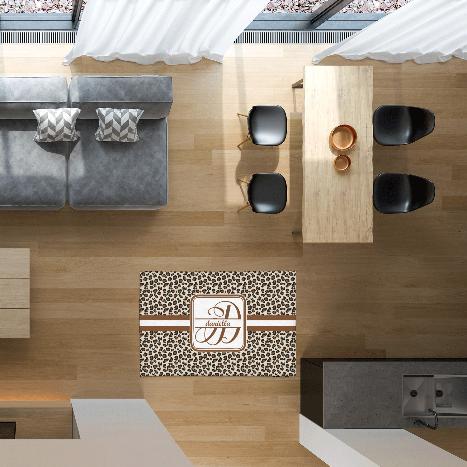 Area rugs add color and warmth to any room in the house, so create a custom area rug to suit your personal style and match it to the colors in your home. Have it personalized with a monogram, initial, name or a combination of these - the choice is yours.