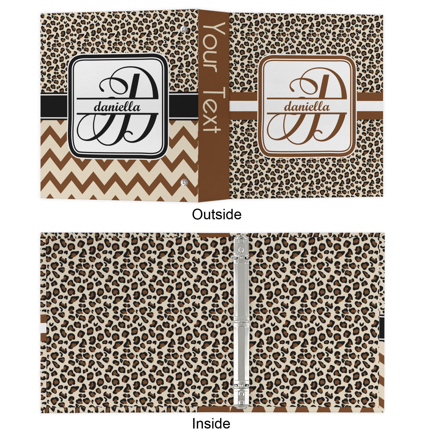 The outside is printed in 3 sections - front cover, spine and back cover - while the inside is printed in a full single print of your choice. The inside boasts a high quality nickel plated binder mechanism with a trigger opening function and is secured to the cardboard binder with posts and screws.