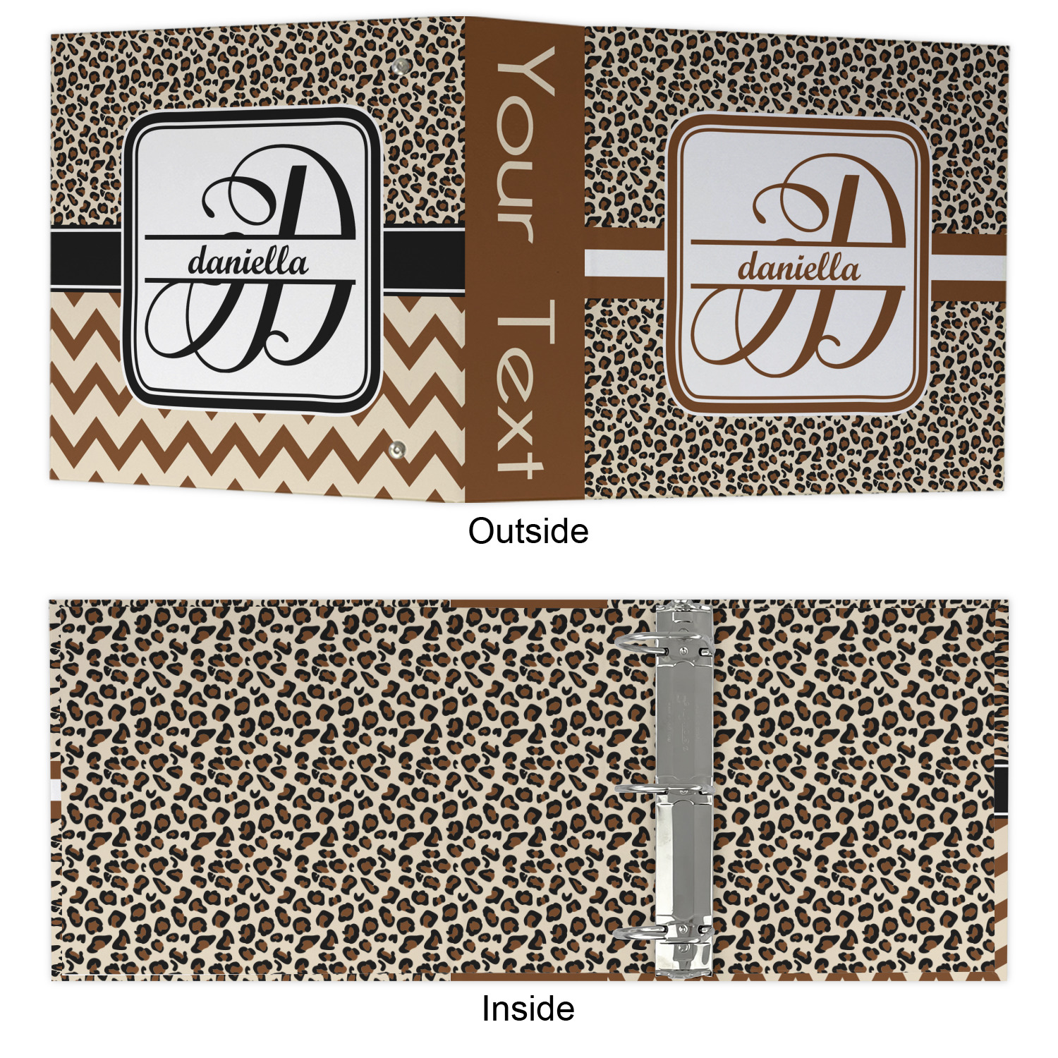 The outside is printed in 3 sections - front cover, spine and back cover - while the inside is printed in a full single print of your choice. The inside boasts a high quality nickel plated binder mechanism with a trigger opening function and is secured to the cardboard binder with posts and screws.