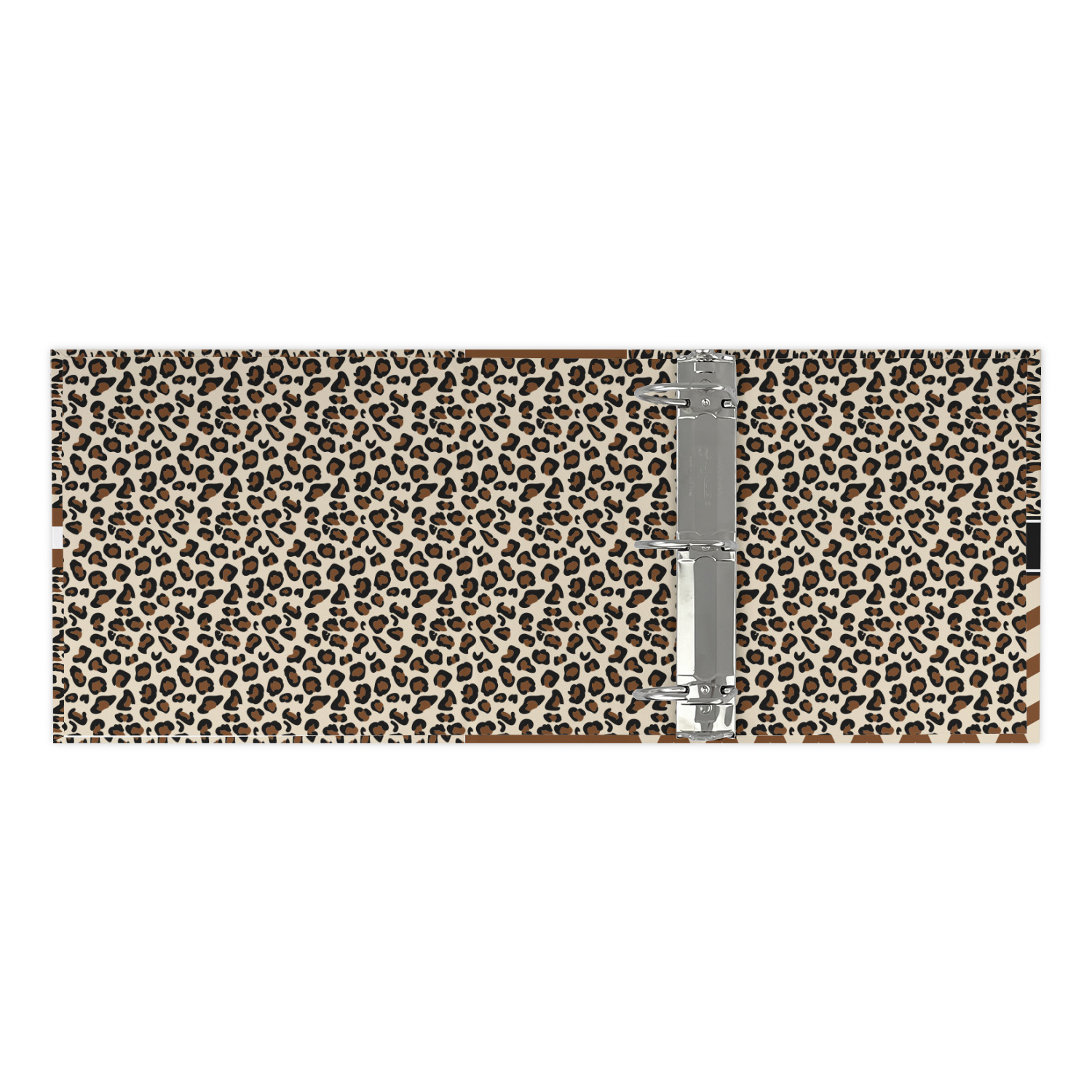 The outside is printed in 3 sections - front cover, spine and back cover - while the inside is printed in a full single print of your choice. The inside boasts a high quality nickel plated binder mechanism with a trigger opening function and is secured to the cardboard binder with posts and screws.