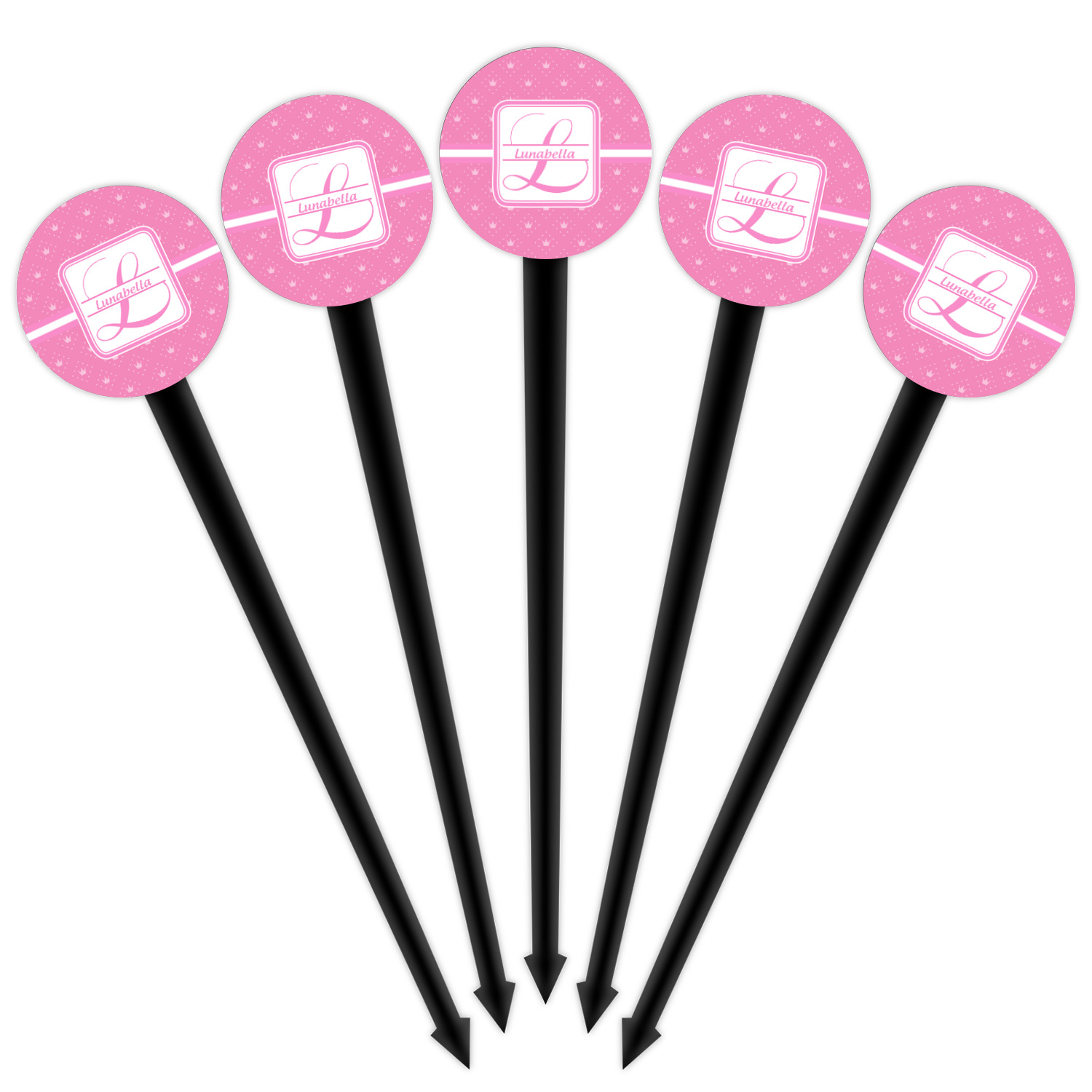 Our plastic cocktail picks have a round disc on top that is printed in full color with your event theme, colors, your logo, your photo, names, initials, monograms etc.