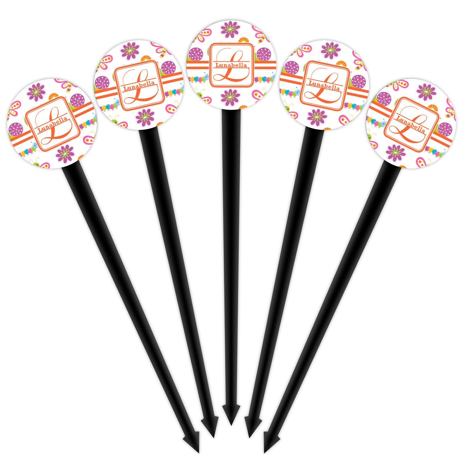 The round disc on these food & drink picks can be customized and personalized to your specifications. Your image will be printed in full color on one side or both sides. You can use the same image on both sides or use two different images.