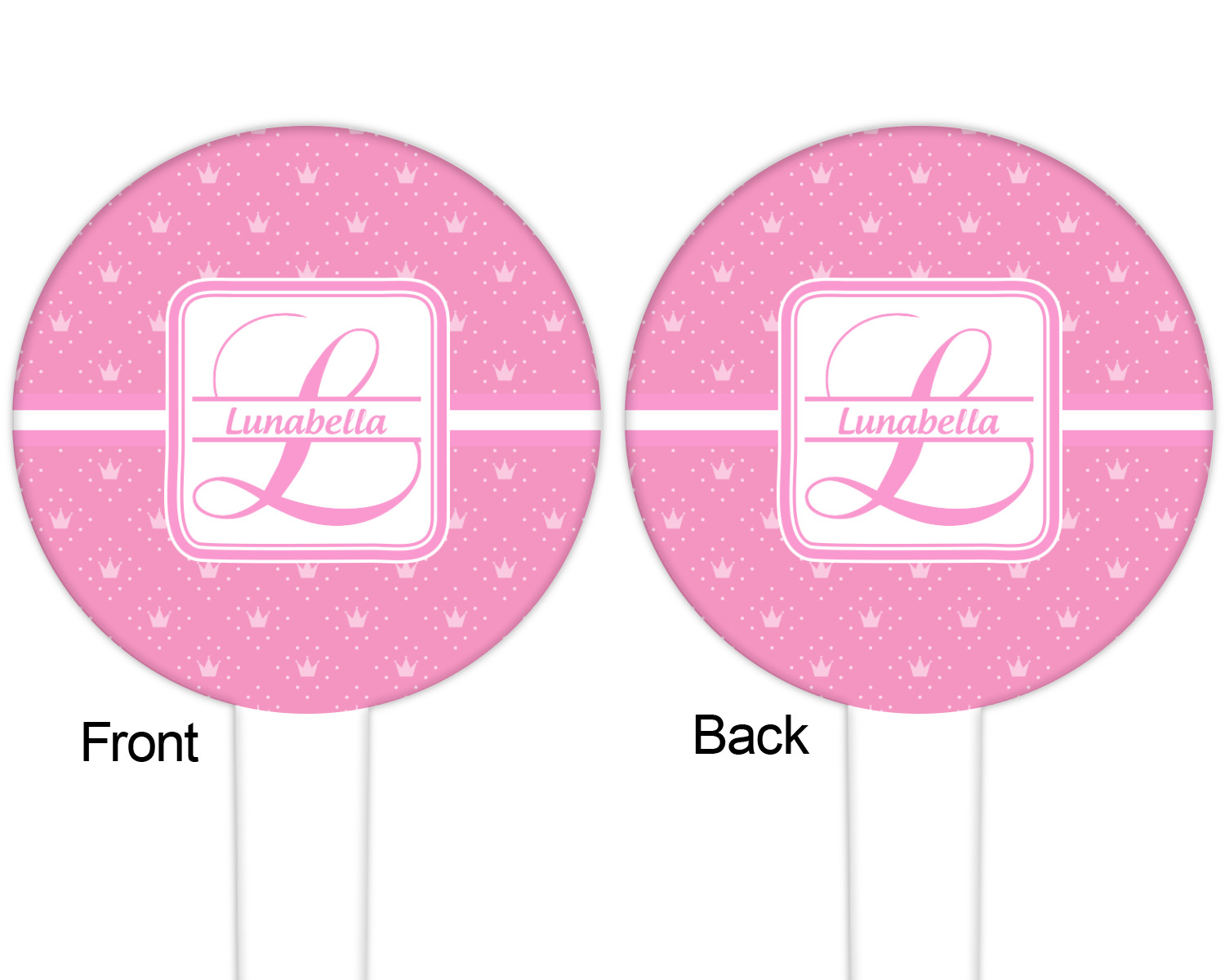 The round disc on these food & drink picks can be customized and personalized to your specifications. Your image will be printed in full color on one side or both sides. You can use the same image on both sides or use two different images.