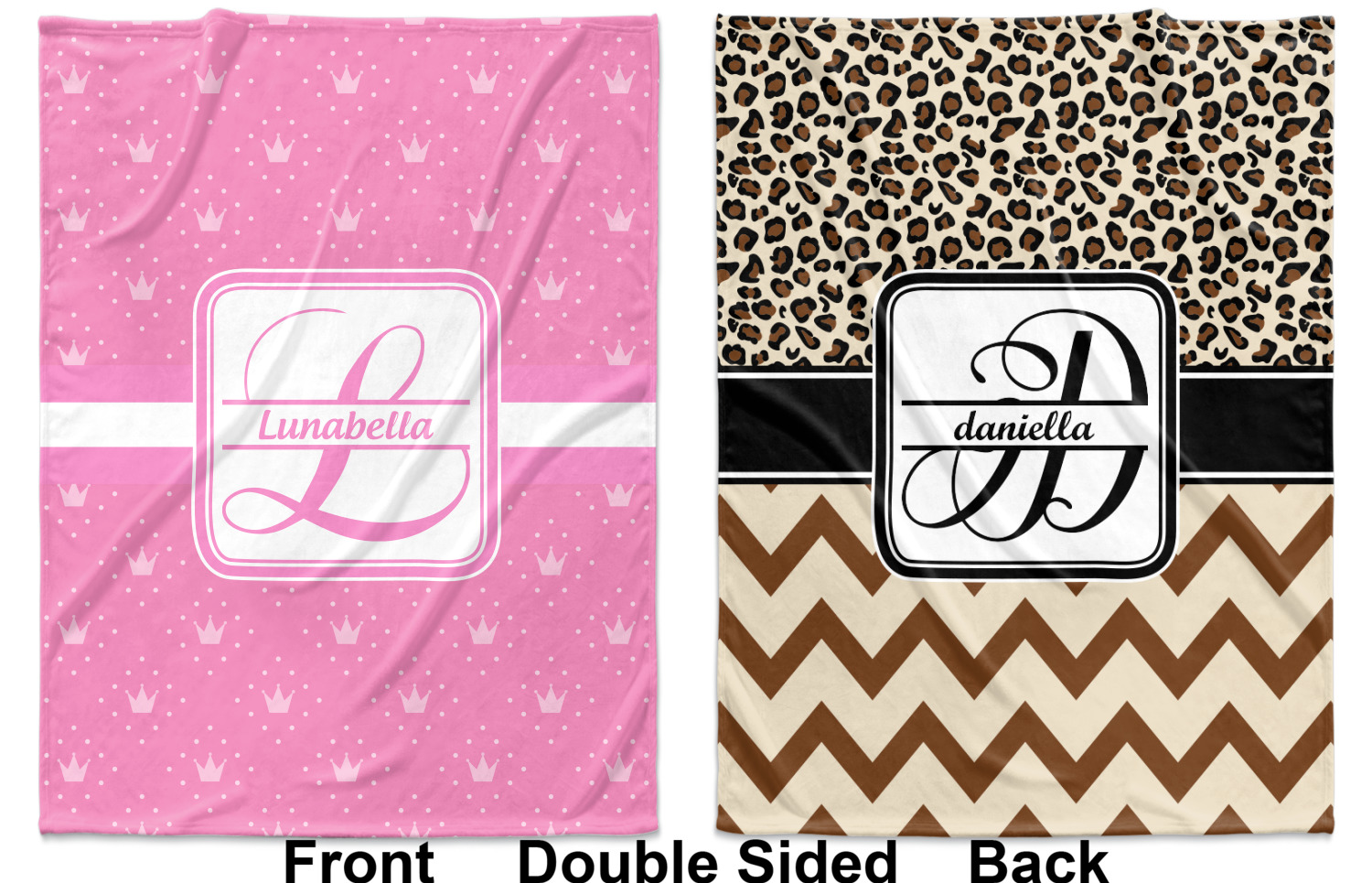 Crafted from a Minky-like fabric, these custom baby blankets are plush and gentle for your babys delicate skin. They measure approximately 30 by 40 inches, making these soft baby blankets the perfect size for your babys crib or stroller. We provide you with the option of customizing your monogrammed baby blanket on only one side, or both sides, with different or coordinating designs. If you choose to only customize one side of the blanket, the back will be a classy, white color, that will help the patterns on your design stand out. We also offer you the option of customizing your baby blanket horizontally or vertically, depending on your creative vision!