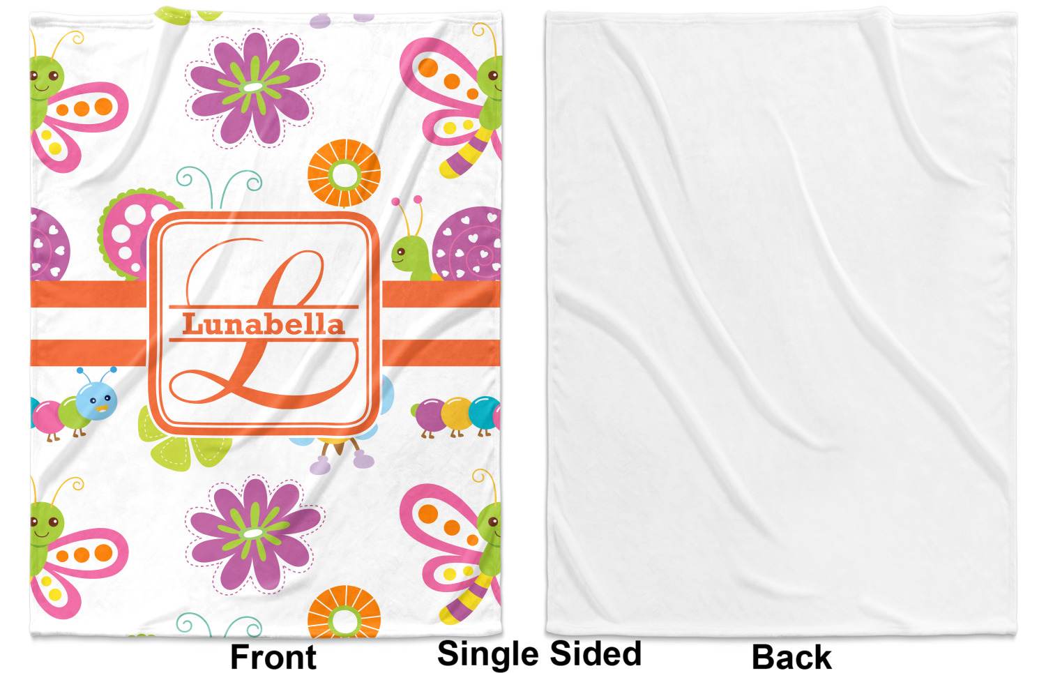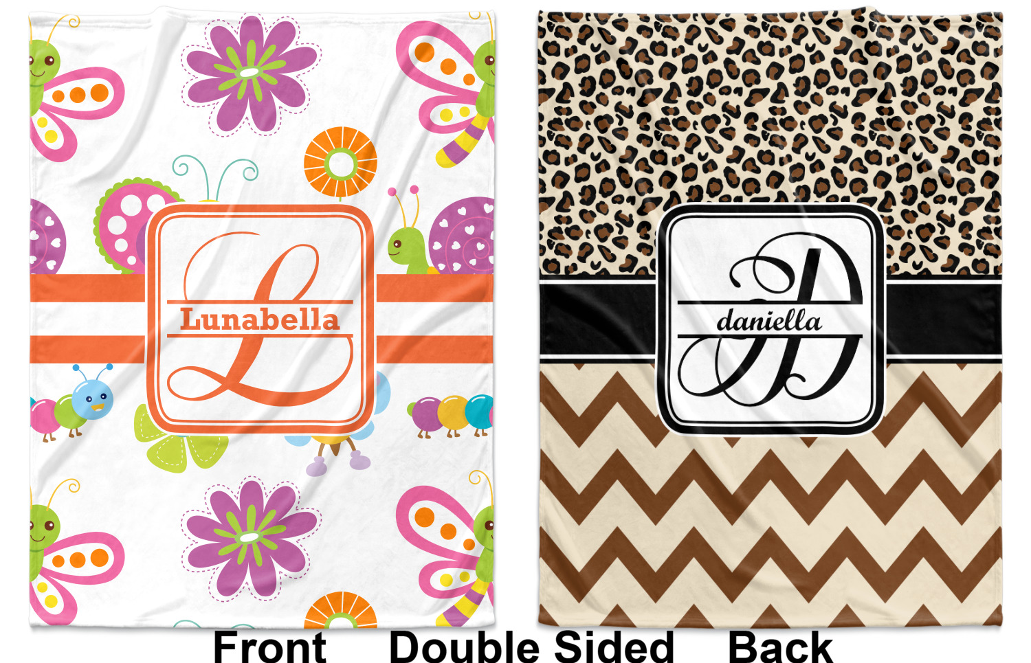 Crafted from a Minky-like fabric, these custom baby blankets are plush and gentle for your babys delicate skin. They measure approximately 30 by 40 inches, making these soft baby blankets the perfect size for your babys crib or stroller. We provide you with the option of customizing your monogrammed baby blanket on only one side, or both sides, with different or coordinating designs. If you choose to only customize one side of the blanket, the back will be a classy, white color, that will help the patterns on your design stand out. We also offer you the option of customizing your baby blanket horizontally or vertically, depending on your creative vision!