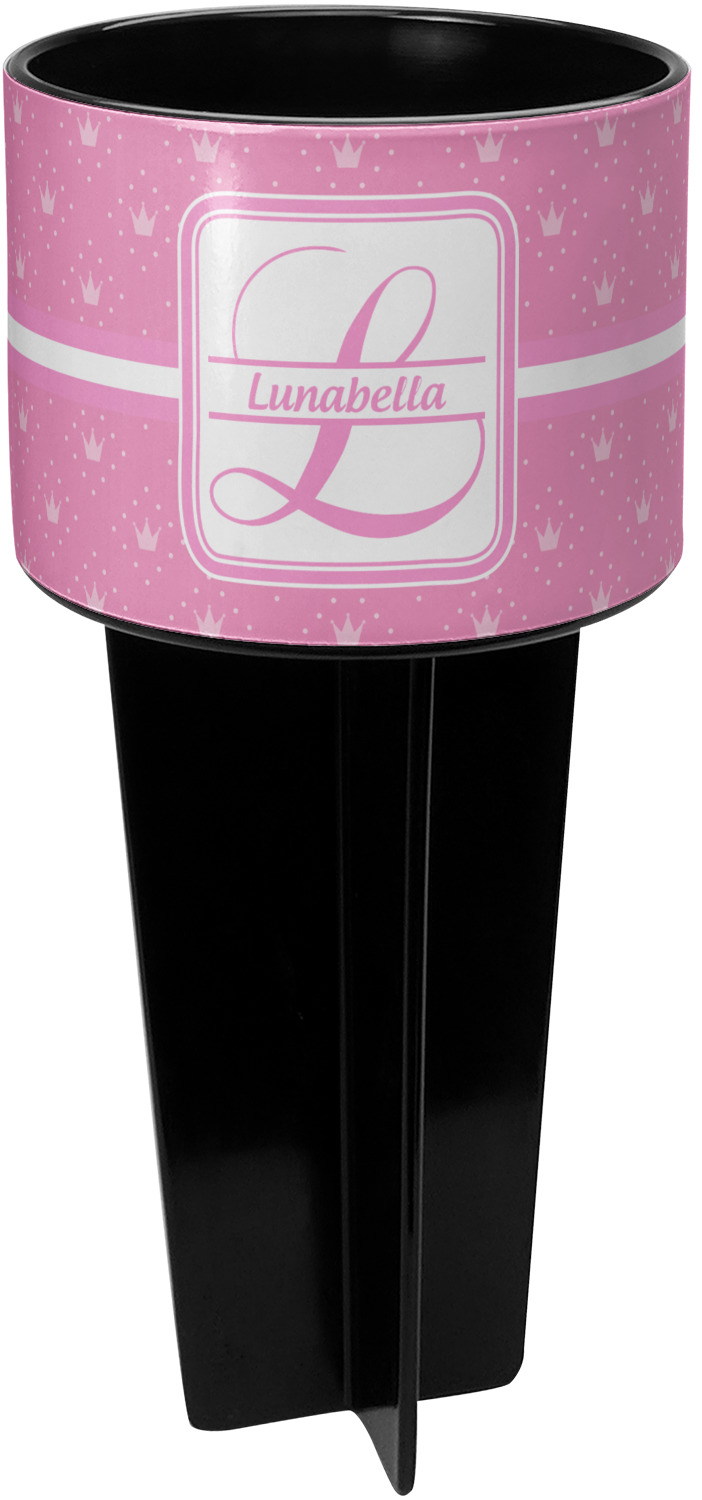 This cup holder has a large stake at its bottom that anchors it to the sand or ground below, while the cup holder rests above the stake. The entire drink holder is made of durable plastic and displays your customization around the cup holder portion. We sell these personalized beach spikers in two different colors: black and white.