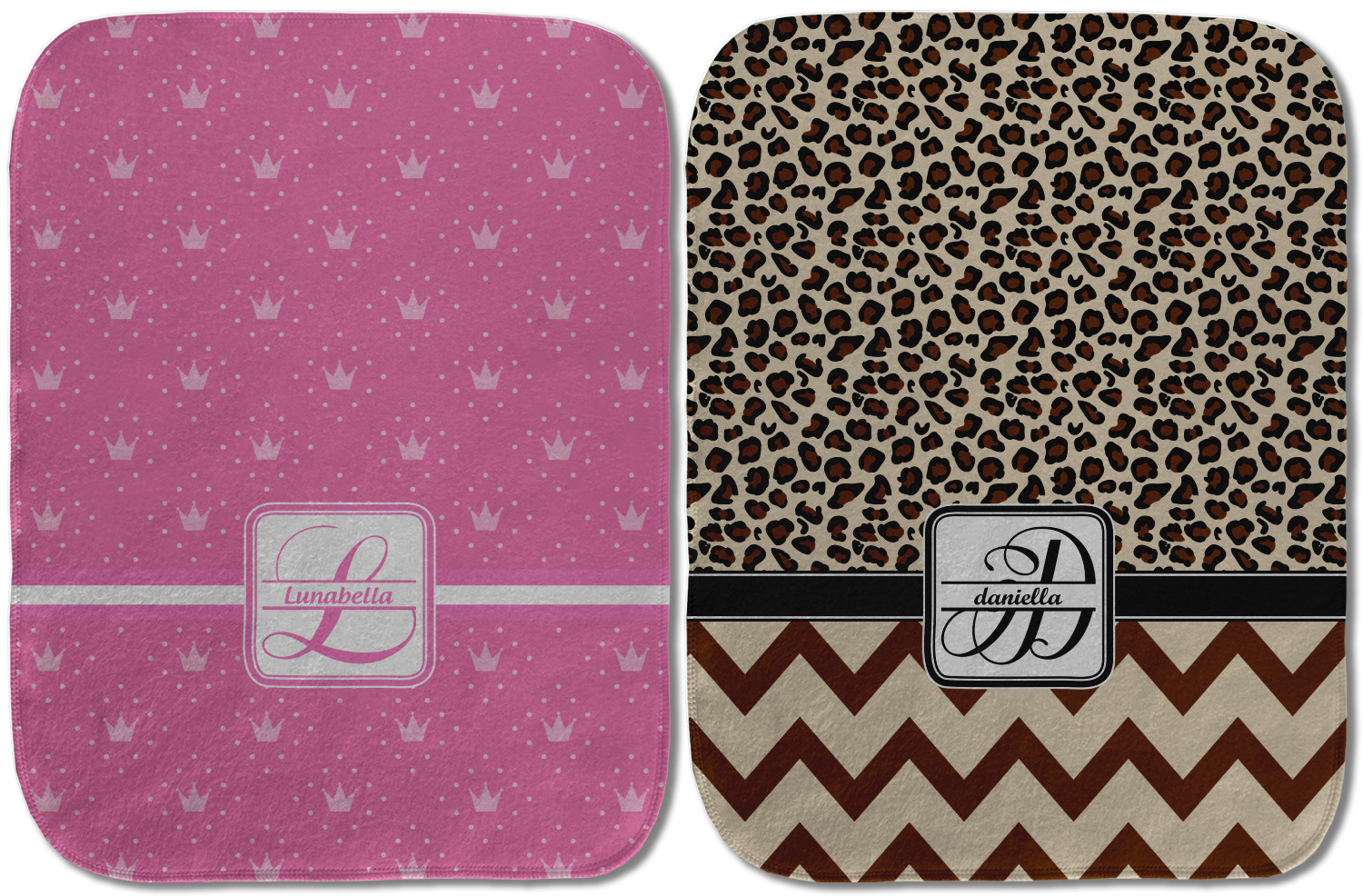 Choose your baby burp cloth from our two styles - Fleece (rectangular) or Microfiber Velour (peanut shape). The lightweight and absorbent design makes each burp cloth multipurpose; use them as a burp pad, a lap pad, a changing table, or a spare cloth to clean up any baby mess. Your customization is displayed across the front with baby-safe ink to ensure extra comfort with a white backing.