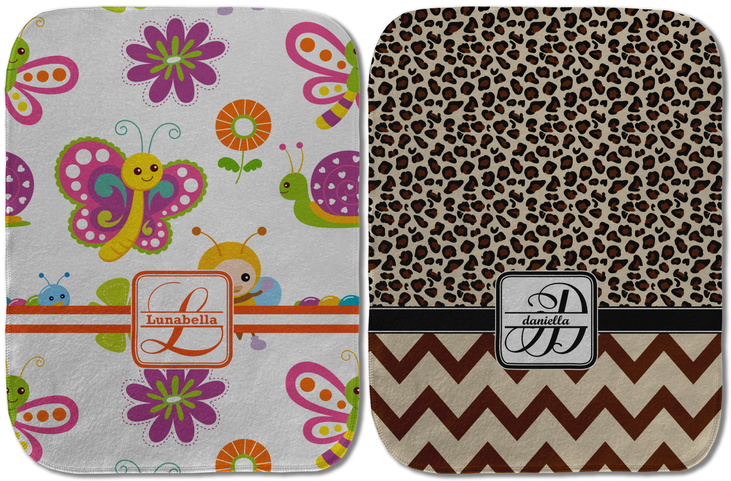 Choose your baby burp cloth from our two styles - Fleece (rectangular) or Microfiber Velour (peanut shape). The lightweight and absorbent design makes each burp cloth multipurpose; use them as a burp pad, a lap pad, a changing table, or a spare cloth to clean up any baby mess. Your customization is displayed across the front with baby-safe ink to ensure extra comfort with a white backing.