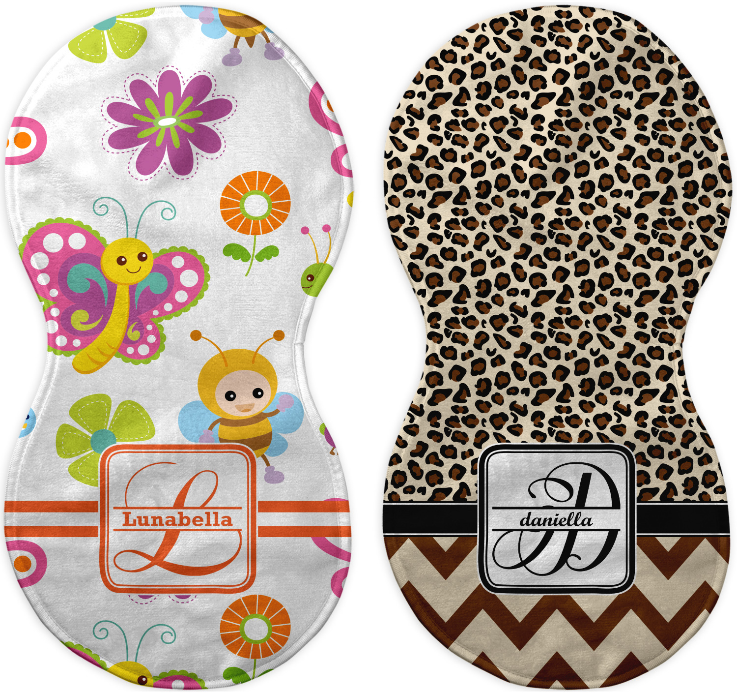 Choose your baby burp cloth from our two styles - Fleece (rectangular) or Microfiber Velour (peanut shape). The lightweight and absorbent design makes each burp cloth multipurpose; use them as a burp pad, a lap pad, a changing table, or a spare cloth to clean up any baby mess. Your customization is displayed across the front with baby-safe ink to ensure extra comfort with a white backing.