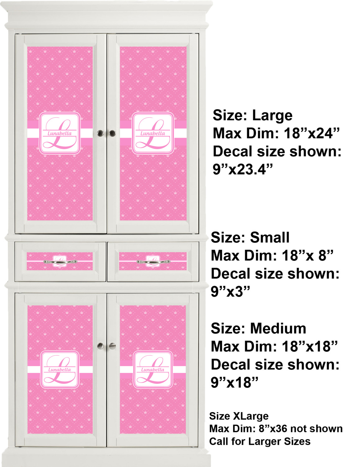 We print your customized design in full color, onto a high quality vinyl, covered with a glossy finish. For attachment to the cabinet, each cabinet sticker is accompanied by an easily applied, adhesive backing. The adhesive backing also guarantees a smooth removal or repositioning if desired. We sell these decals in four different sizes, but each size can be downsized appropriately to fit the needs of your kitchen. We offer a small, which is 18 by 8 inches, a medium, which is 18 by 18 inches, a large, at 24 by 18 inches, and an extra large, at 36 by 18 inches. We advise that you measure your cabinets first so you can make a properly informed purchase. For those who are interested in purchasing decals larger than 18 by 36 inches, please contact our team.