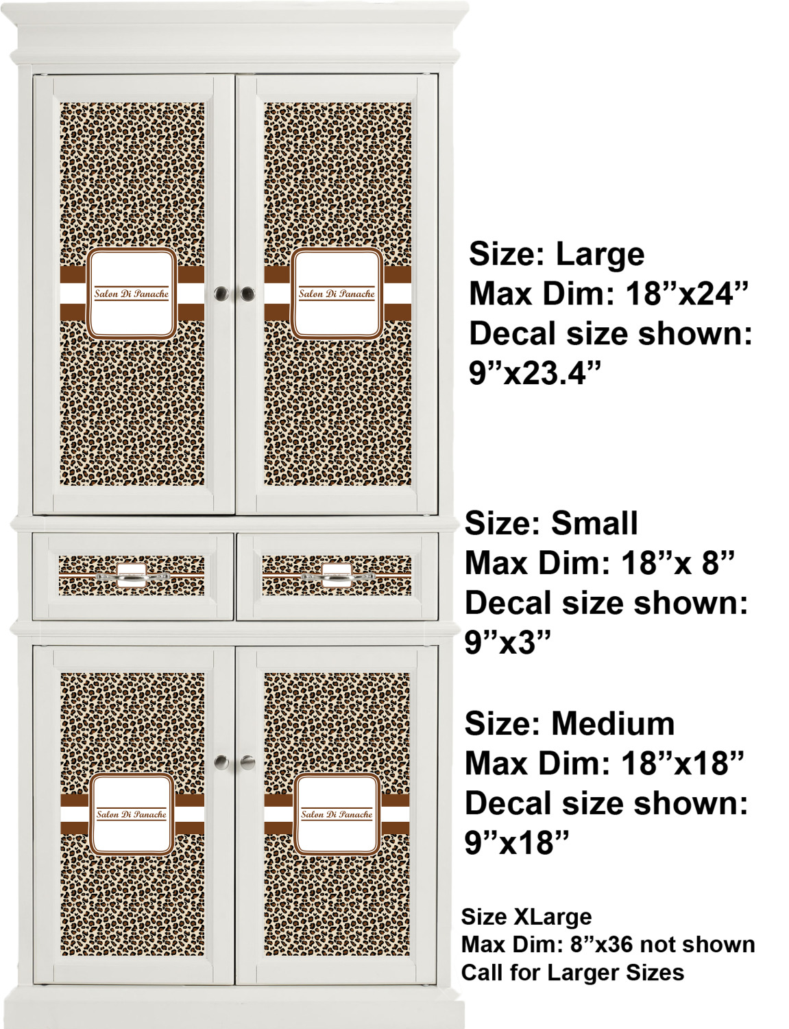 We print your customized design in full color, onto a high quality vinyl, covered with a glossy finish. For attachment to the cabinet, each cabinet sticker is accompanied by an easily applied, adhesive backing. The adhesive backing also guarantees a smooth removal or repositioning if desired. We sell these decals in four different sizes, but each size can be downsized appropriately to fit the needs of your kitchen. We offer a small, which is 18 by 8 inches, a medium, which is 18 by 18 inches, a large, at 24 by 18 inches, and an extra large, at 36 by 18 inches. We advise that you measure your cabinets first so you can make a properly informed purchase. For those who are interested in purchasing decals larger than 18 by 36 inches, please contact our team.