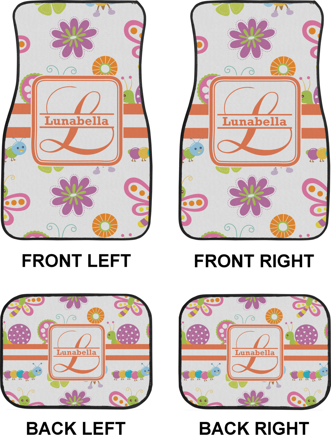 We craft our auto floor mats mats from polyester, apply a black finish to the edges, and lined at the bottom to prevent slippage. These mats protect your floors from grass, mud, and any accidental spills. We display your personalized design on the front face of each mat. The sizes of these car floor liners are standardized to provide a versatile fit for all vehicles. The front rows car mats measure at 17 by 26.5 inches, while the back rows measure at 17 by 13 inches. We sell three packages of car floor mats. You can purchase a pair of front row car mats, a pair of back row car mats, or a set of front row and back row car mats. To make an informed purchase, we recommend measuring the surface area of your car floors.